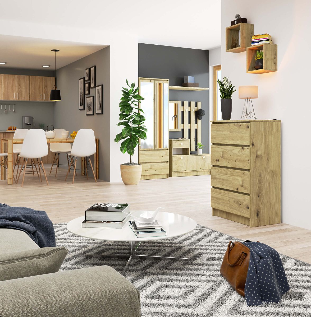 Komoda se čtyřmi zásuvkami v barvě dub Artisan. .. více