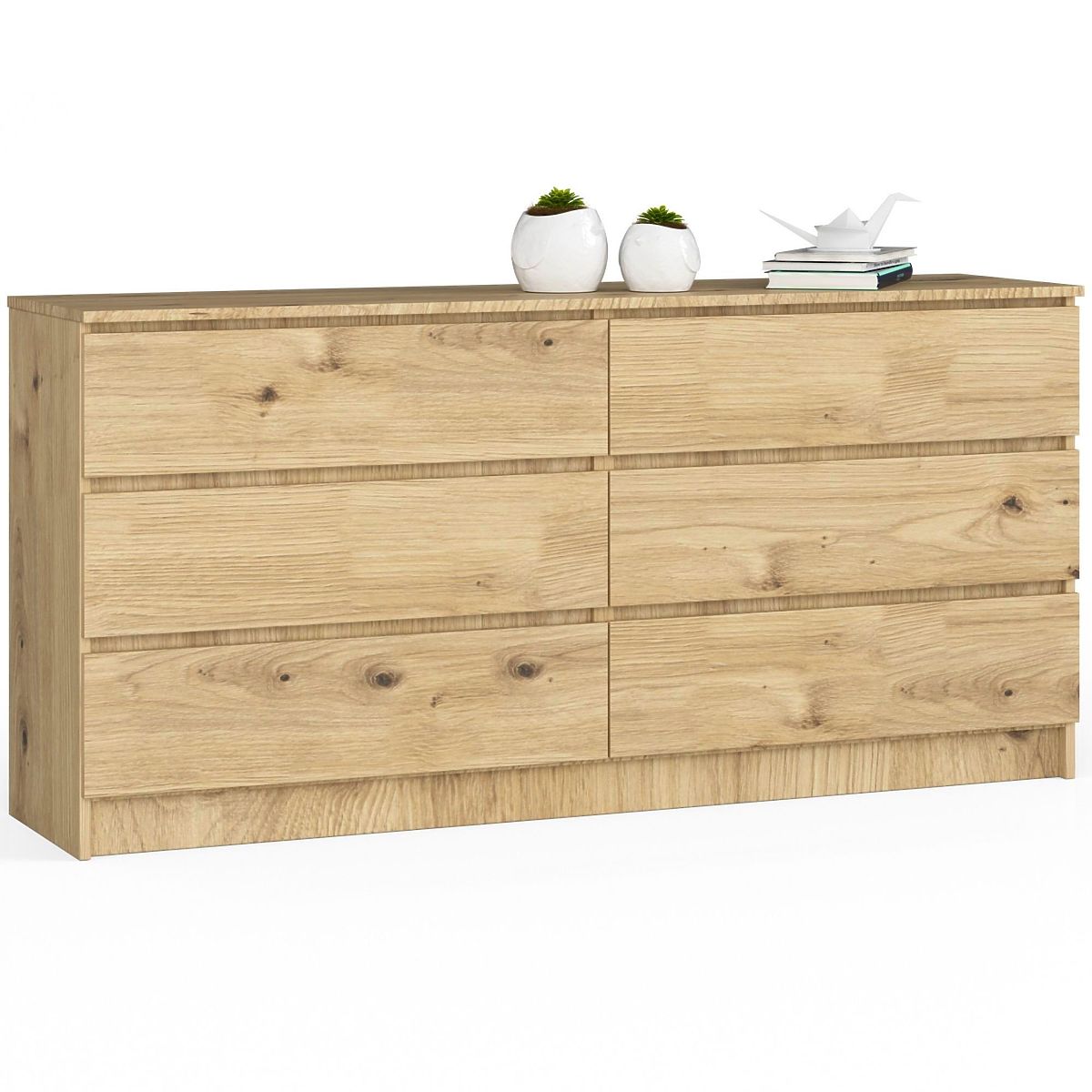 Moderní komoda se šesti prostornými zásuvkami v barvě dub artisan. .. více