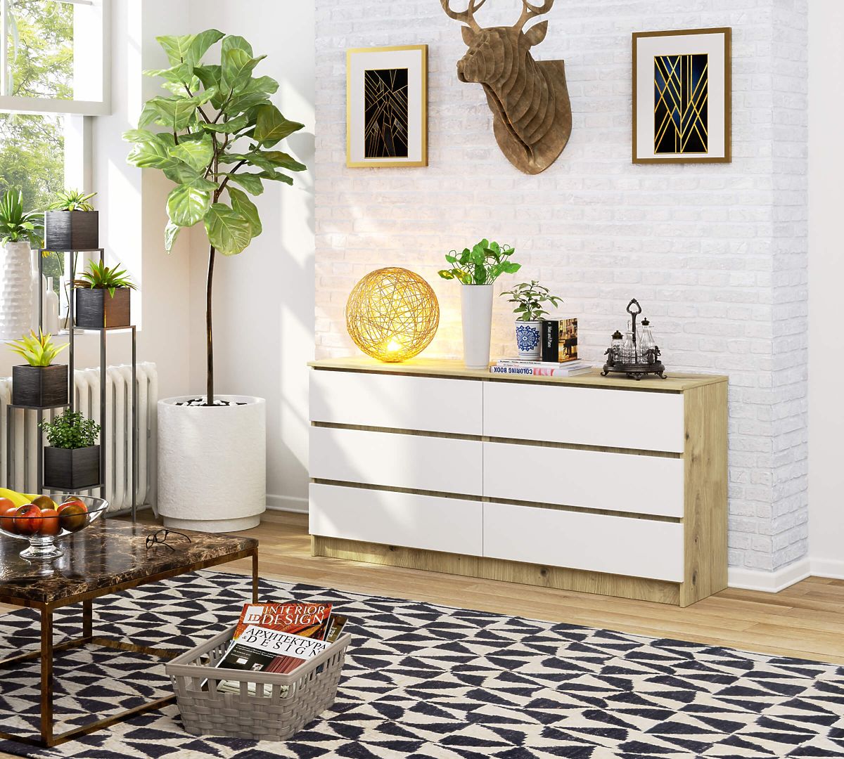 Komoda K160 cm s šesti zásuvkami v kombinaci dubu a bílé. .. více