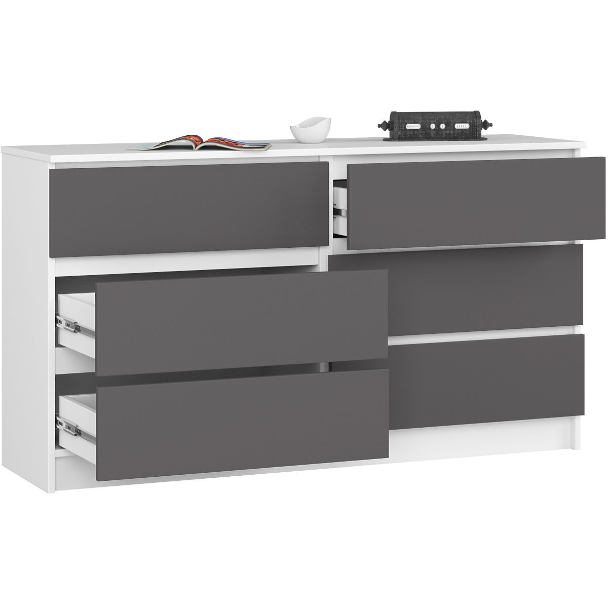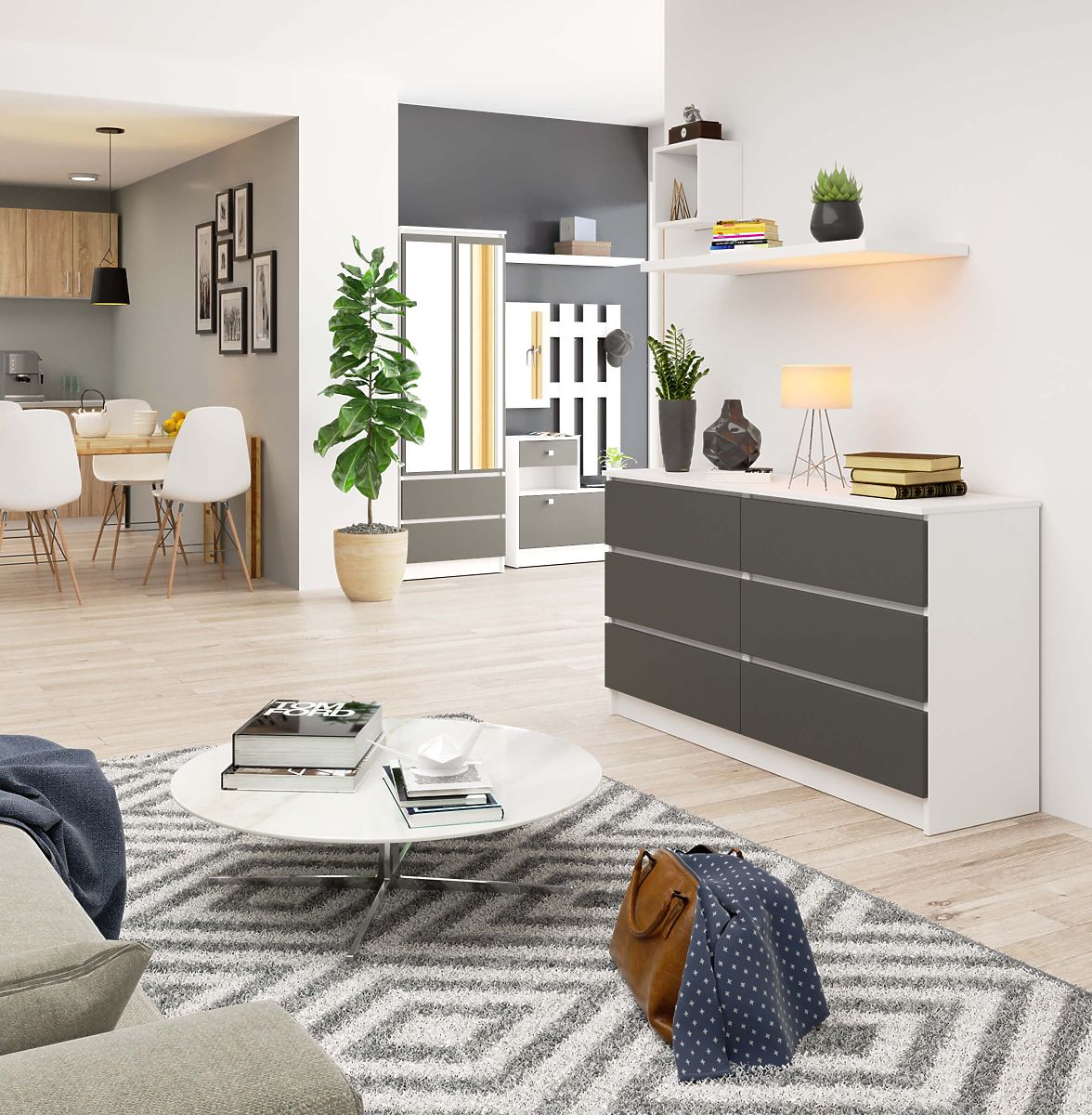Komoda s 6 zásuvkami v bílé a grafitové šedé barvě. .. více