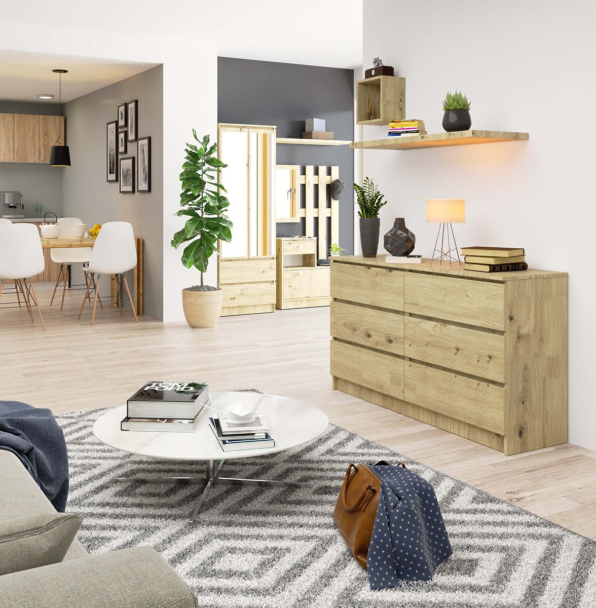 Komoda z laminované desky s 6 zásuvkami a ABS hranou v barvě Dub Artisan. .. více