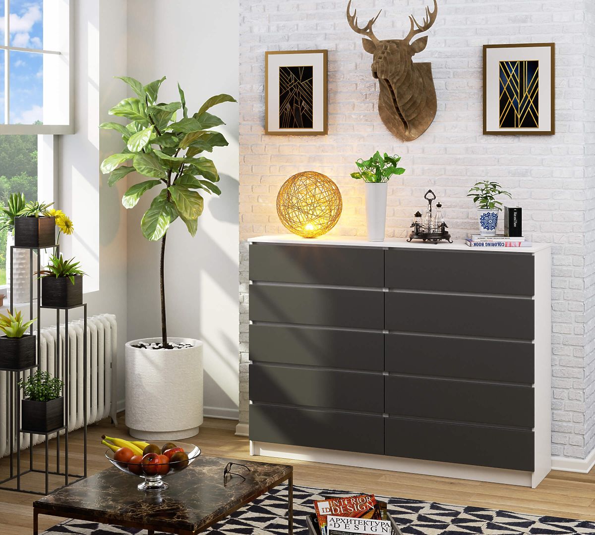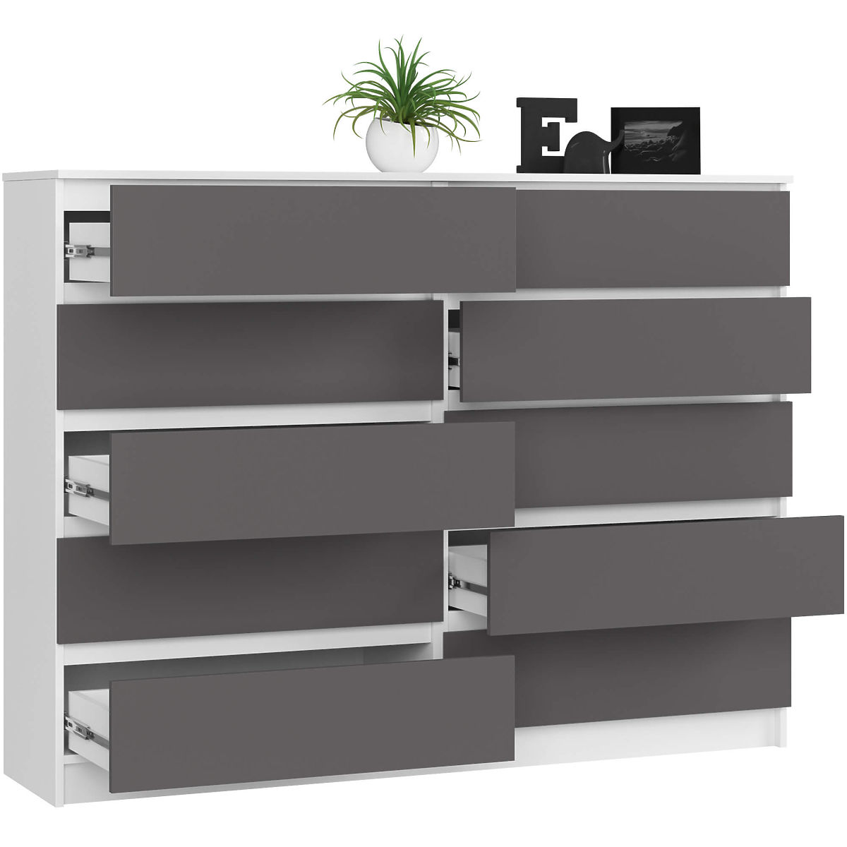 Komoda s 10 zásuvkami v bílé a šedé barvě. .. více