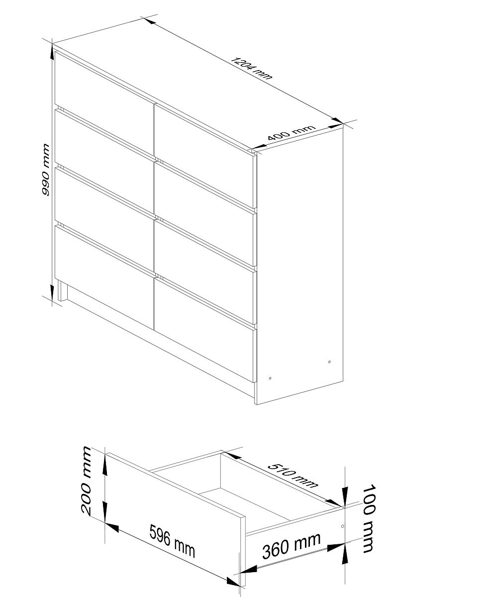 KOMODA K 120cm 8 ZÁSUVKY