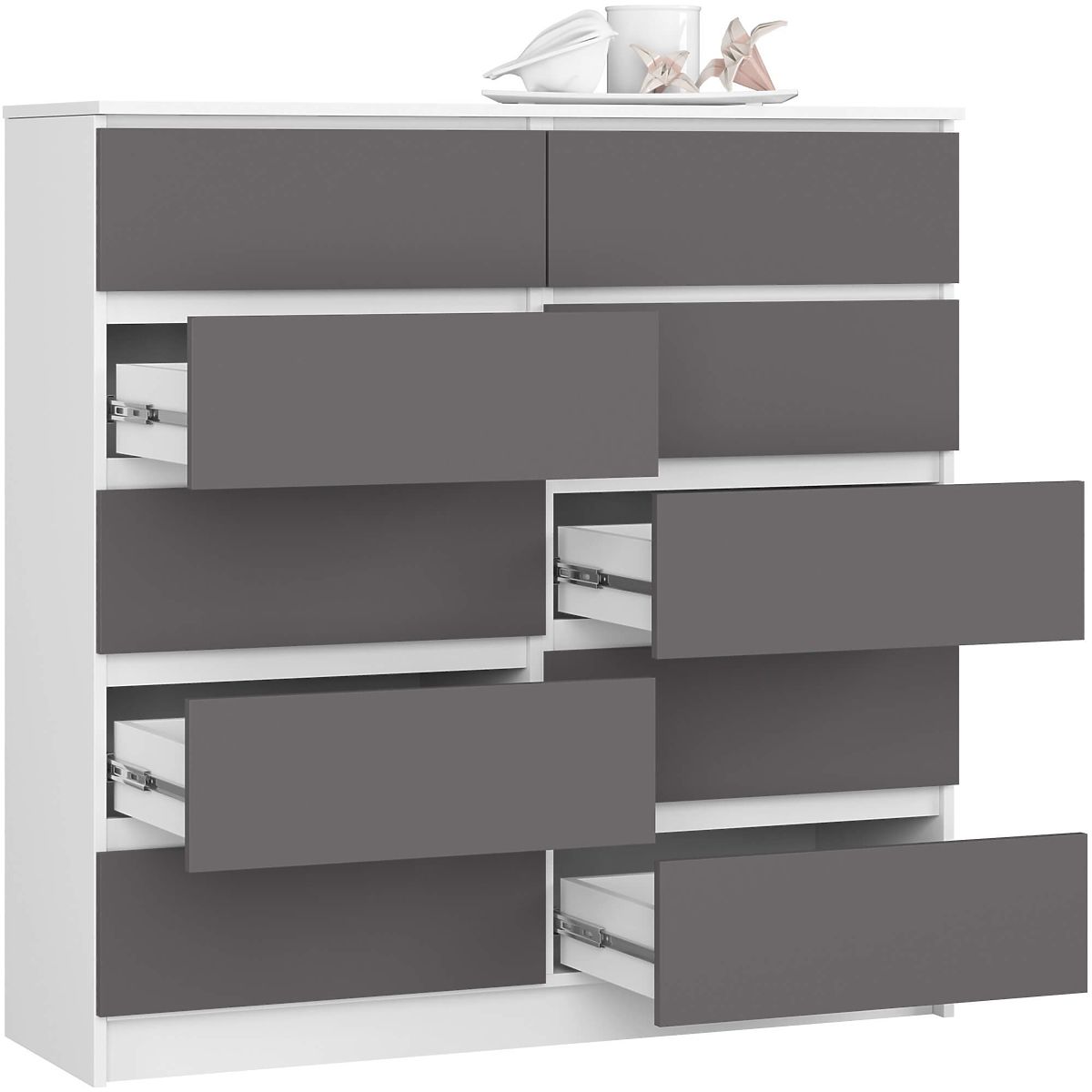 Komoda s deseti zásuvkami a matným bílým korpusem. .. více