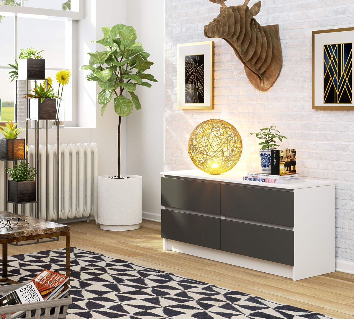 Komoda s 4 zásuvkami z laminované desky, barva bílá/šedá. .. více