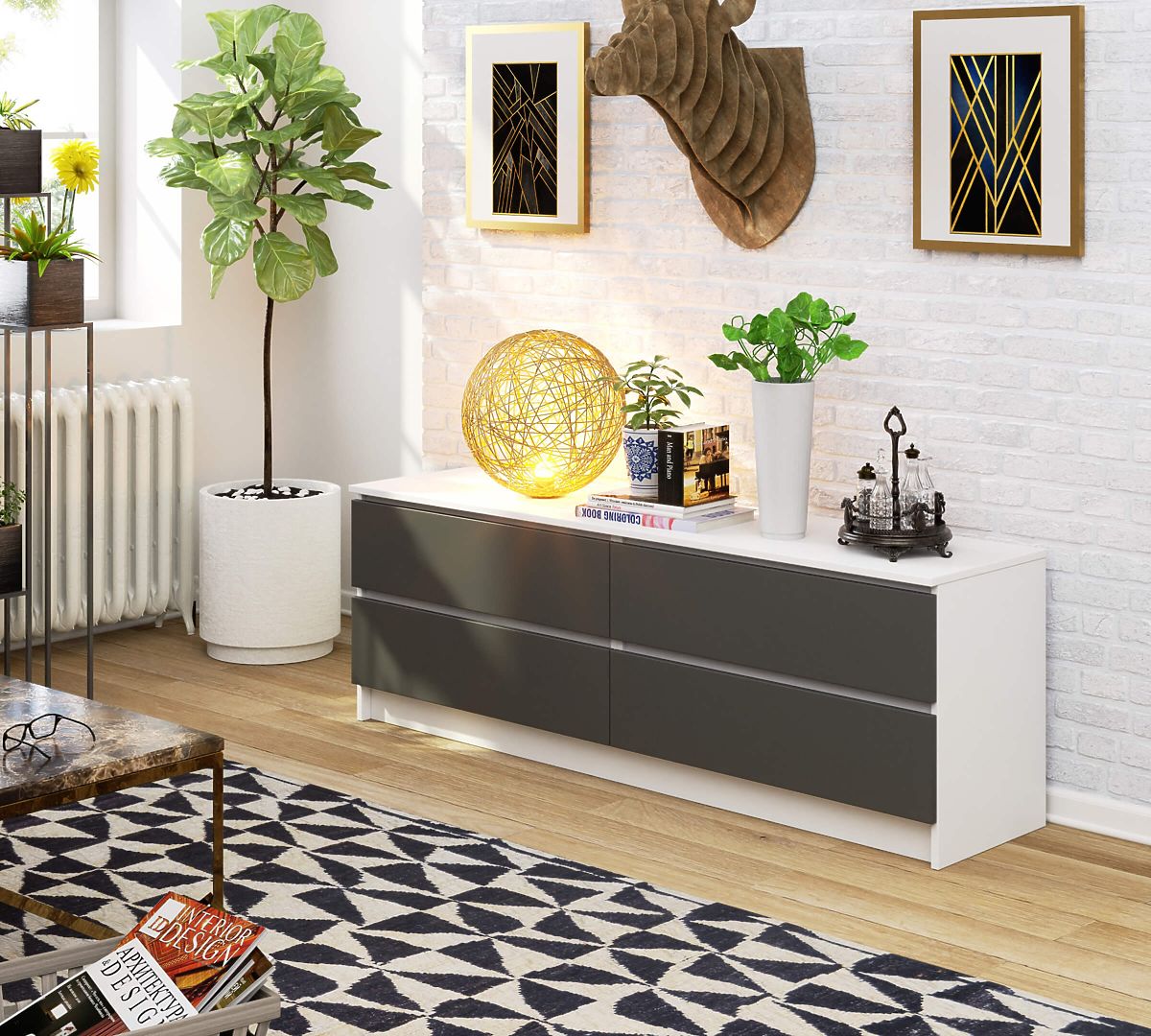 Komoda s 4 zásuvkami a matným šedým čelem. .. více
