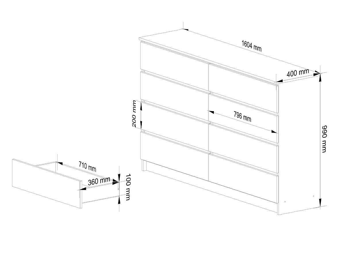 KOMODA K 160cm 8 zásuvek vyrobená z 16mm laminované desky odolné proti oděru.