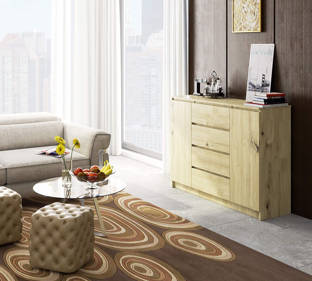 KOMODA K140 2 DVEŘE 4 ZÁSUVKY