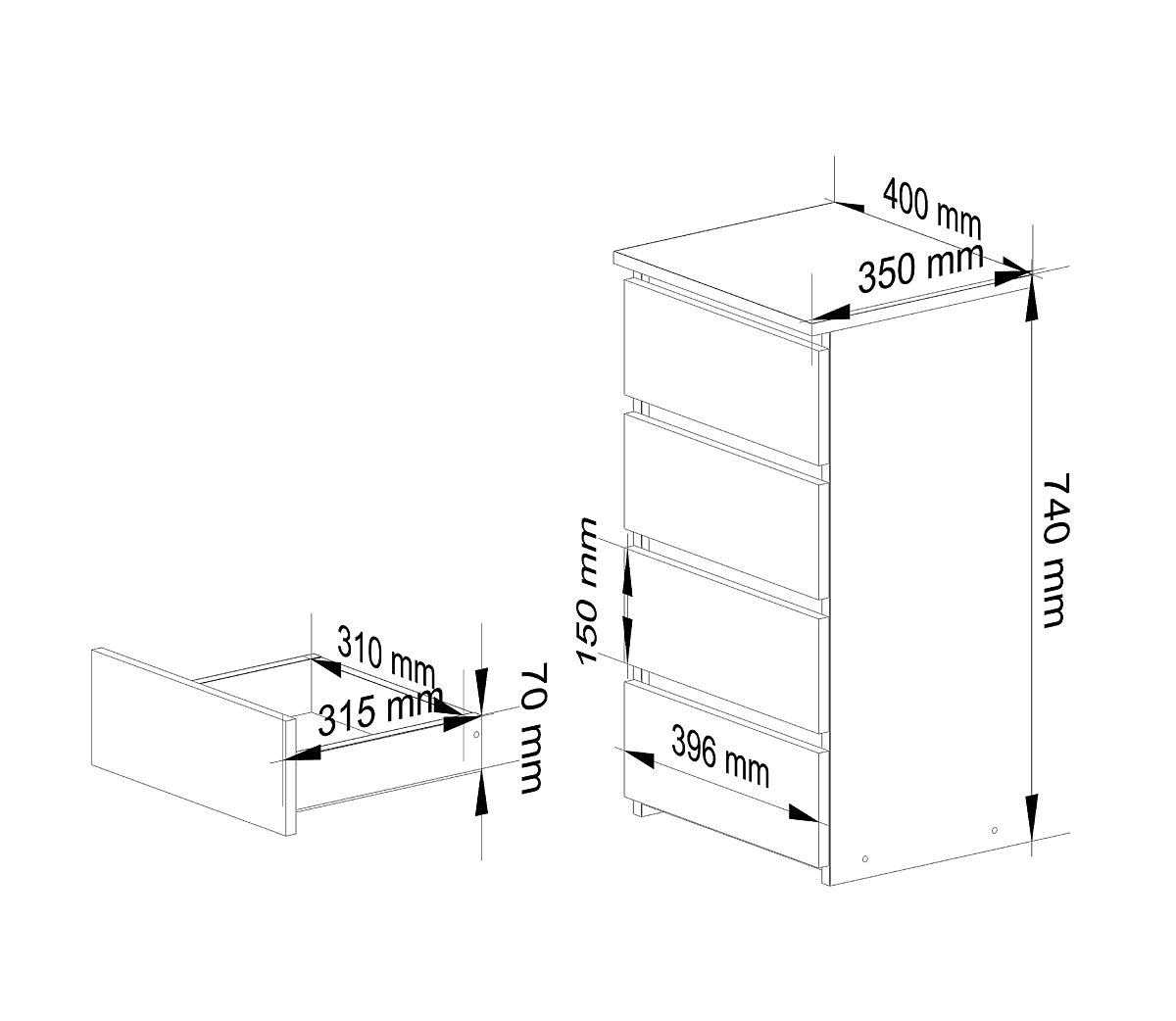 Komoda CL4 40 cm v grafit šedé barvě s 4 zásuvkami. .. více