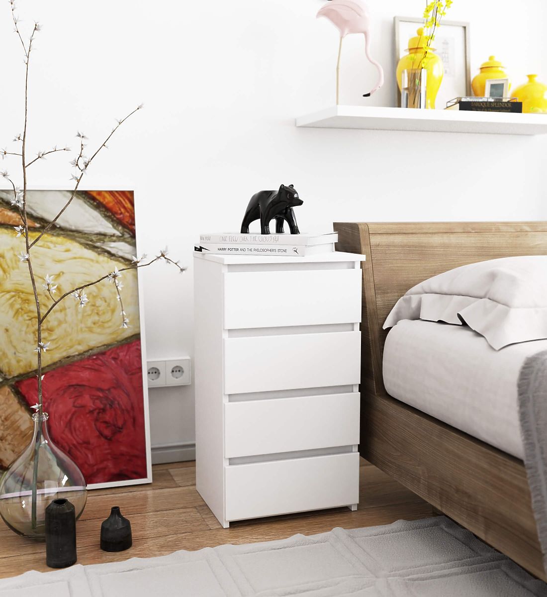 Komody jsou oblíbeným typem nábytku, který se umisťuje vedle postele. Na jeho desce se nejčastěji nachází lampička, zatímco uvnitř jsou předměty usnadňující odpočinek a spánek. Ti, kteří hledají elegantní komodu, by měli věnovat pozornost komodě CL4 40 cm v bílé barvě. Bude se krásně vyjímat v každé ložnici. Lze ji umístit také do dětského pokoje.