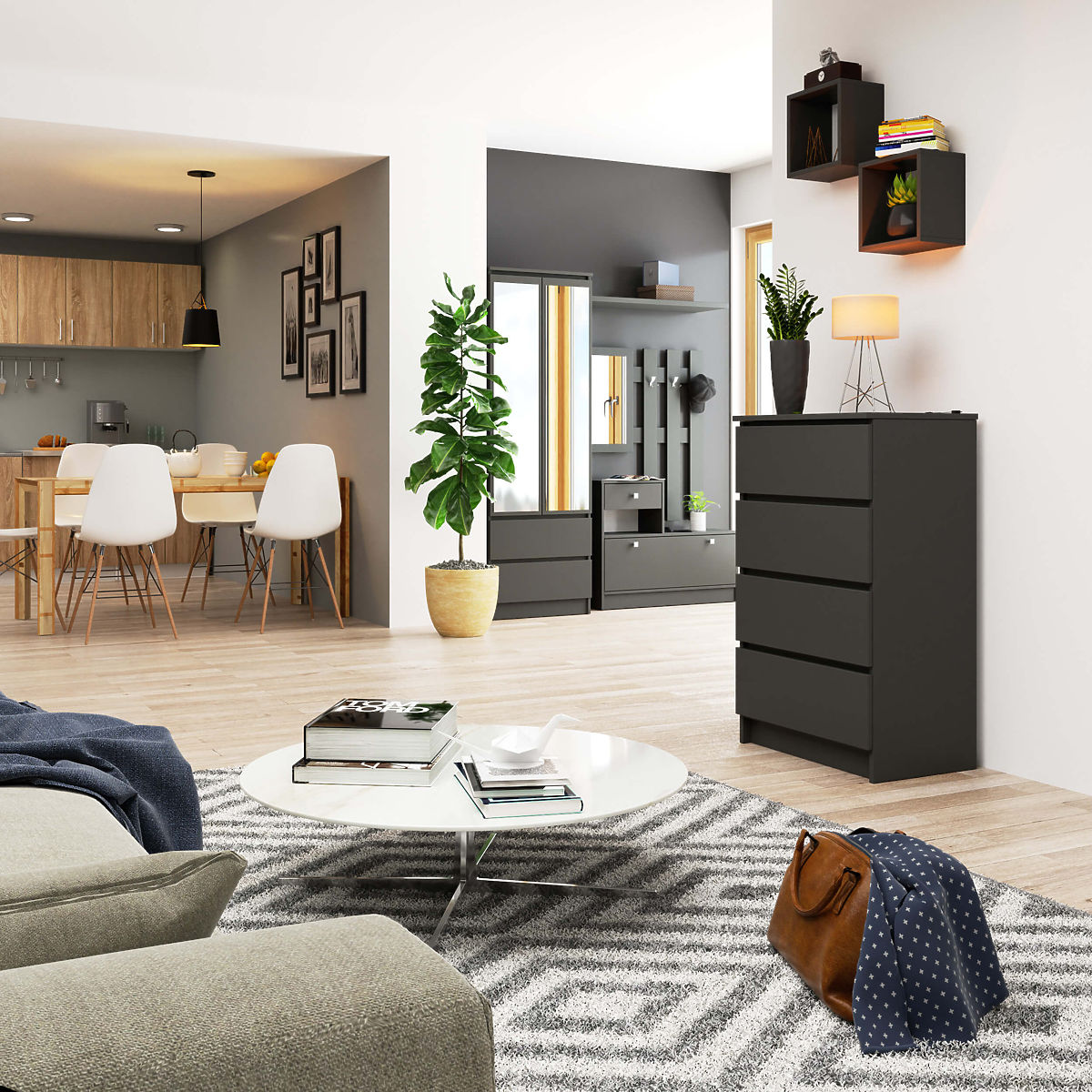 Komoda s 4 zásuvkami v grafitově šedé barvě. .. více