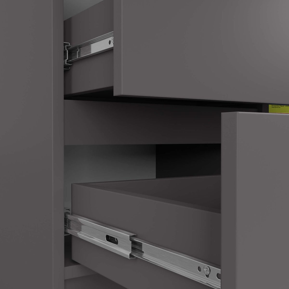 Malá komoda je prvek vybavení, který najde uplatnění v každé místnosti. Moderní barvy, pevná konstrukce a pečlivé zpracování vedly k vytvoření skříňky, která se osvědčí například v předsíni, obývacím nebo mládežnickém pokoji, ale také v ložnici. Může být využita i v kancelářském prostoru, kde umožní ukládání četných dokumentů a dalších kancelářských potřeb. Komoda se skládá z jedněch dvířek (uvnitř jsou dvě police) a 3 zásuvek. Nábytek kombinuje barvu grafit šedá.