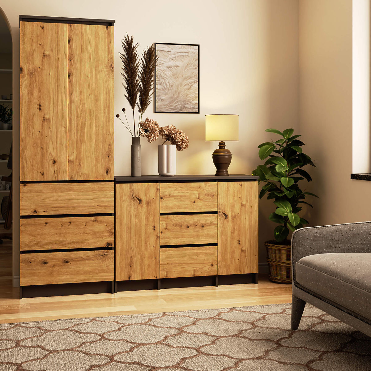 Babynabytek.cz » Dětský nábytek / Komody a skříně / Komody / KOMODA K100 2D 3SZ PK GRAFIT ŠEDÁ / DUB ARTISAN