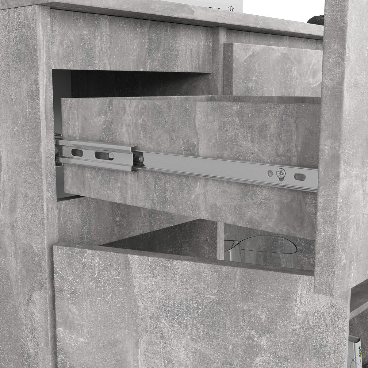 - Zásuvky se pohybují na kovových kuličkových pojezdech