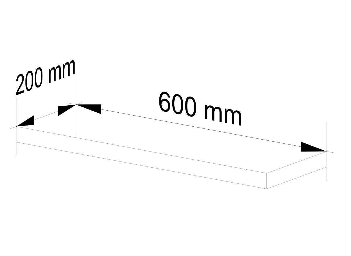 Nábytková police 60cm Vyrobena z laminované desky odolné proti oděru. Hrany jsou olepeny melaminem. Součástí balení jsou neviditelné nástěnné držáky.