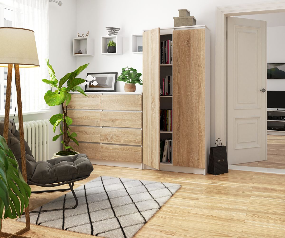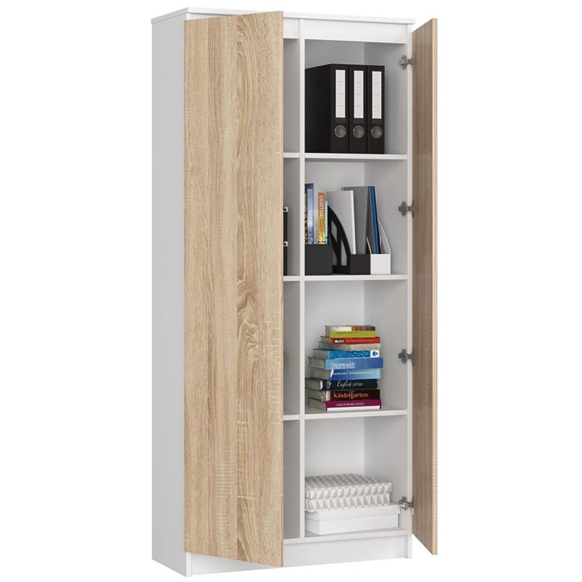 Kancelářská skříň R 80 cm Clip 2 je nábytek v barvě bílá/sonoma, což je jedna z nejoblíbenějších barev této sezóny. Tato knihovna přinese do vaší kanceláře pořádek a harmonii. Je vybavena osmi prostornými policemi, ve kterých uložíte všechny potřebné věci v kanceláři. Navíc jsou její hrany olepeny ABS hranou, která poskytuje vysokou ochranu proti poškození. Mezi výhody této knihovny patří: