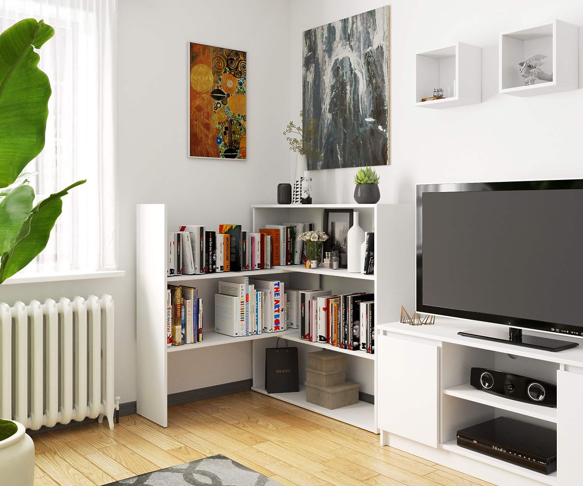 Unikátní přestavitelný regál mini TWIST, který lze rozložit nebo vytvořit rohový regál. Díky svým vlastnostem se ideálně hodí do každého typu obývacího pokoje, kanceláře nebo dětského pokoje.