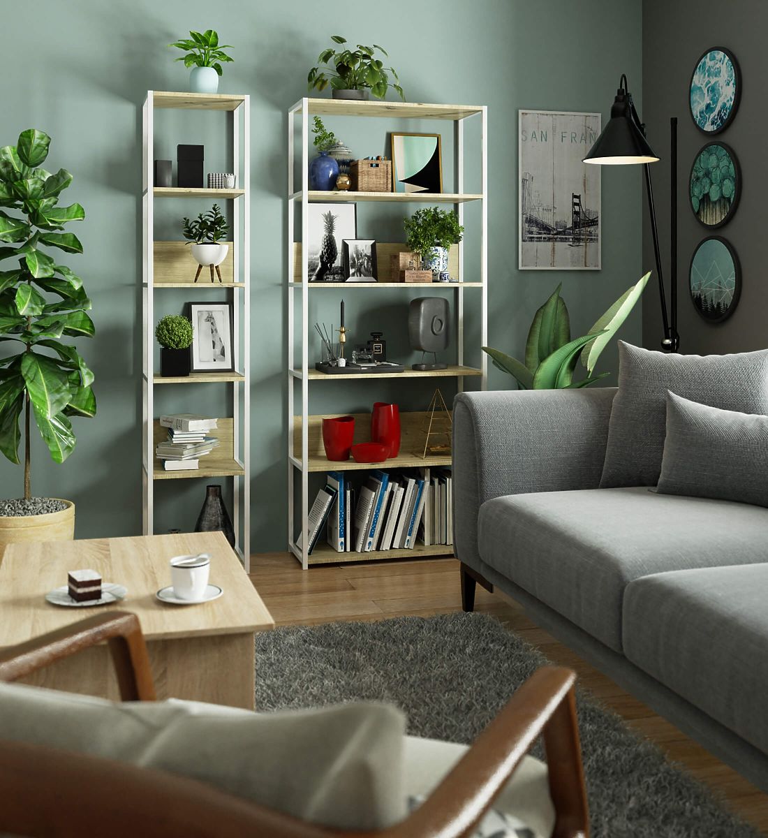 Kovový loftový regál je praktický a moderní nábytek, který se hodí jak do obývacího pokoje, tak do kanceláře. Regál s bílým kovovým rámem a 6 policemi v barvě dub artisan. Police regálu jsou vyrobeny z laminované desky o tloušťce 16 mm. Je to trvanlivý a odolný materiál, který se vyznačuje vysokou odolností proti oděru. Hrany jsou navíc chráněny ABS hranou, díky čemuž nábytek bude vypadat dobře i při velmi intenzivním každodenním používání. Regál je vybaven 6 policemi, na které můžete umístit předměty, které chcete vystavit nebo mít po ruce. Celkově působí velmi stylově a moderně.