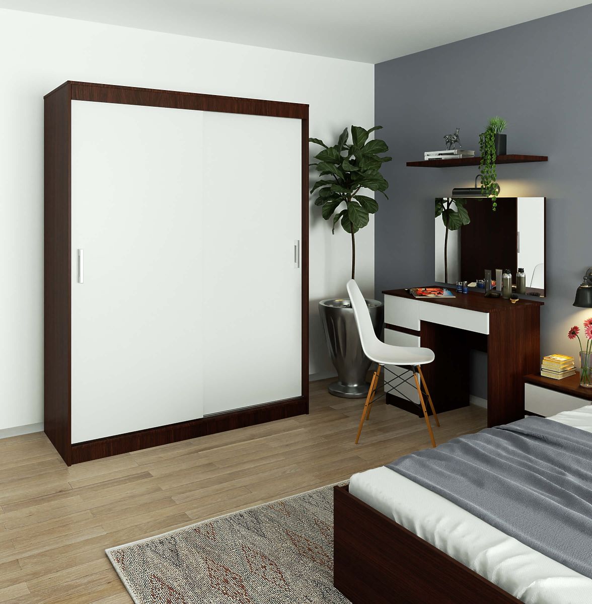 Babynabytek.cz » Dětský nábytek / Komody a skříně / Šatní skříně / POSUVNÁ SKŘÍŇ 150 cm CLP MONO WENGE/BÍLÁ