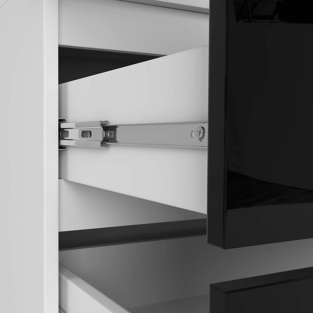 Prostorná skříň s černými lesklými čelními plochami a bílým korpusem. .. více