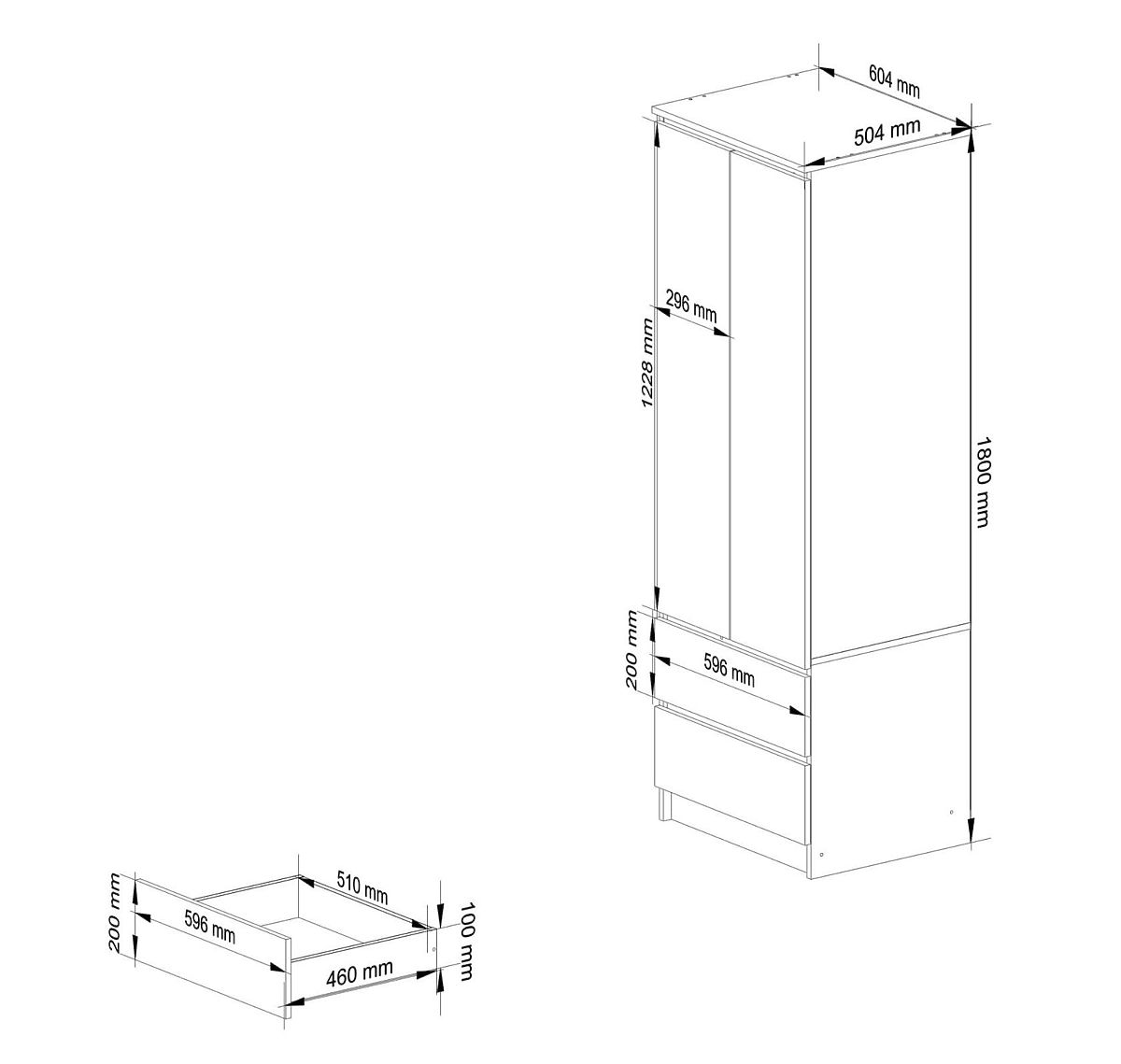Hloubka - 51cm- Skříň vyrobená z laminované desky firmy kronospan odolné proti oděru