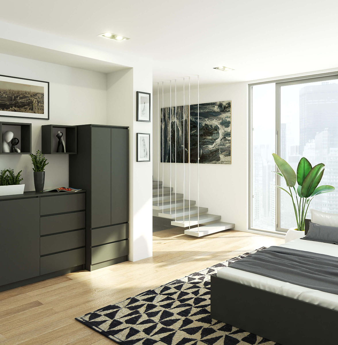 Skříň s 2 dveřmi a 2 zásuvkami v grafitově šedé barvě. .. více