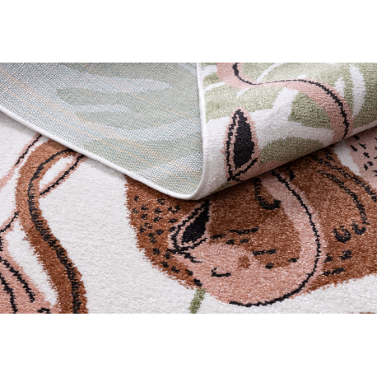 Vneste do dětského pokoje radost a jemnou tropickou atmosféru s kobercem FUN Flami, který zdobí hraví plameňáci. Krémová barva působí klidně a snadno se kombinuje s ostatním vybavením. Koberec je příjemný na dotek, vhodný pro každodenní hraní a díky odolnému materiálu skvěle obstojí i v aktivním dětském prostředí. Ideální volba do pokojíčku, herny či školky.