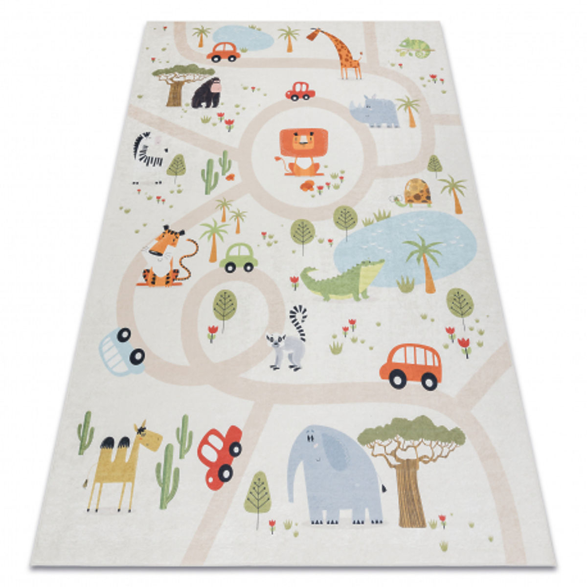 Babynabytek.cz » Dětský nábytek / Koberce / Kusové koberce / BAMBINO 1165 mycí kobereček Zoologická zahrada pro děti protiskluz - béžový