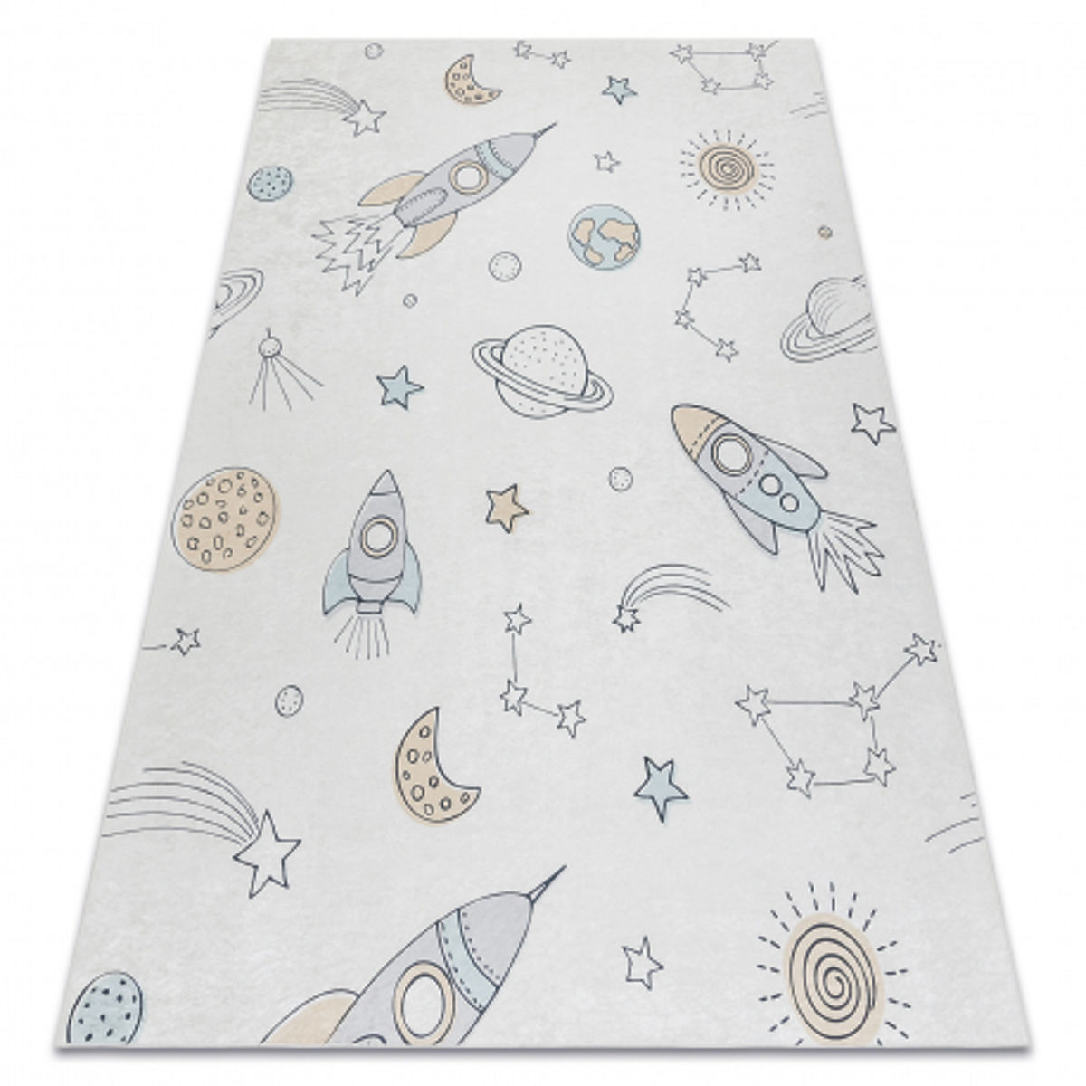 Babynabytek.cz » Dětský nábytek / Koberce / Kusové koberce / BAMBINO 1278 mycí kobereček Vesmírná raketa pro děti protiskluz - krém