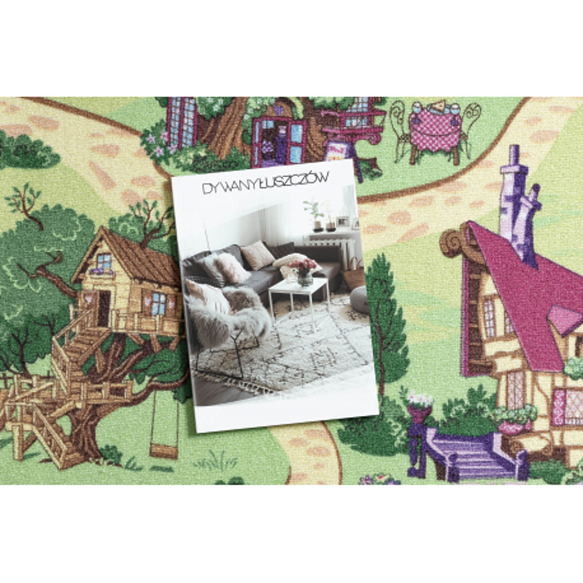 Vytvořte svému dítěti barevný a hravý koutek s protiskluzovým dětským kobercem REBEL ROADS Candy Town 27. Kombinace růžové a zelené barvy a veselý design přinášejí do dětského pokoje radostnou atmosféru a podporují kreativní hraní. Koberec je ideální pro bezpečné hraní, odpočinek i pohybové aktivity vašich dětí. Koberec je vyroben ze 100% polyamidu, který je příjemný na dotek, odolný a snadno udržovatelný. Díky tloušťce 4 mm a hmotnosti 1,3 kg/m² je lehký, pohodlný a zároveň pevný na podlaze. Protiskluzová pogumovaná spodní strana zajišťuje bezpečnost při hraní a minimalizuje riziko uklouznutí.