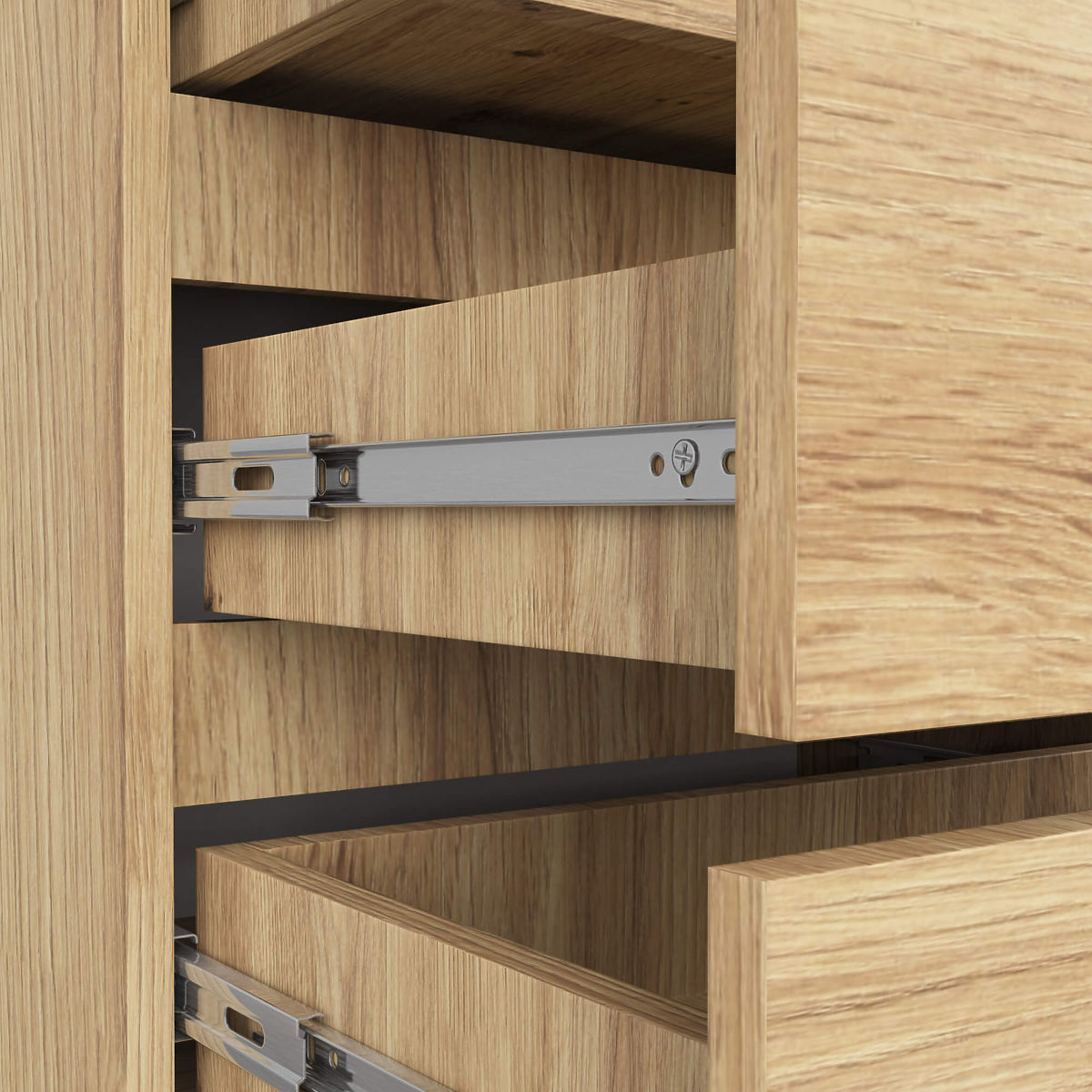 - Zásuvky se pohybují na kovových kuličkových pojezdech
