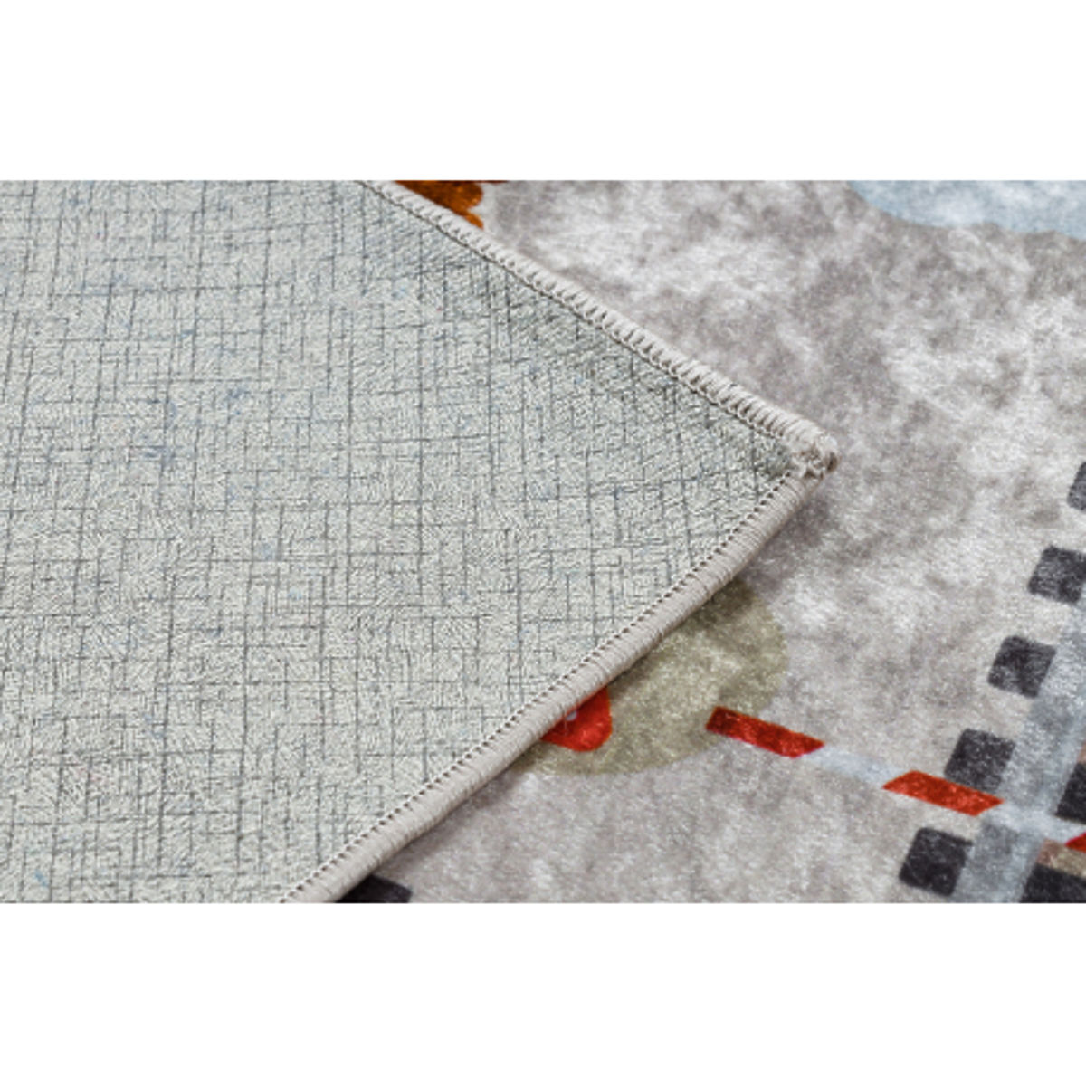 Babynabytek.cz » Dětský nábytek / Koberce / Kusové koberce / JUNIOR 51986.803 mycí kobereček Koleje, lokomotiva pro děti protiskluz - šedá