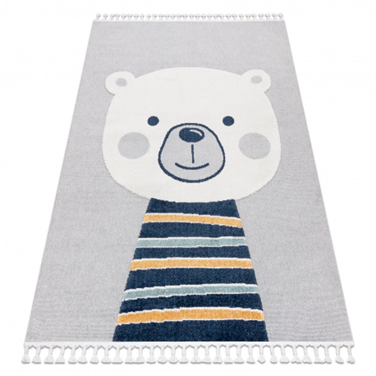 Babynabytek.cz » Dětský nábytek / Koberce / Kusové koberce / Koberec YOYO GD50 šedo / bílé - Medvídek pro děti, strukturální, senzoricky Třásně