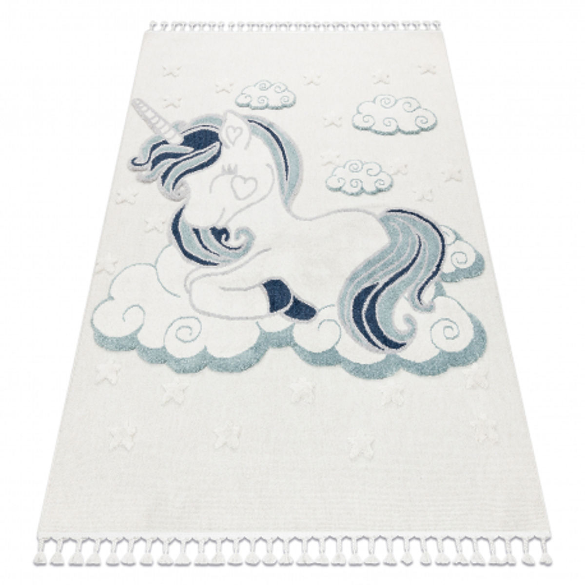 Babynabytek.cz » Dětský nábytek / Koberce / Kusové koberce / Koberec YOYO GD49 bílé / šedo - Jednorožec pro děti, strukturální, senzoricky Třásně