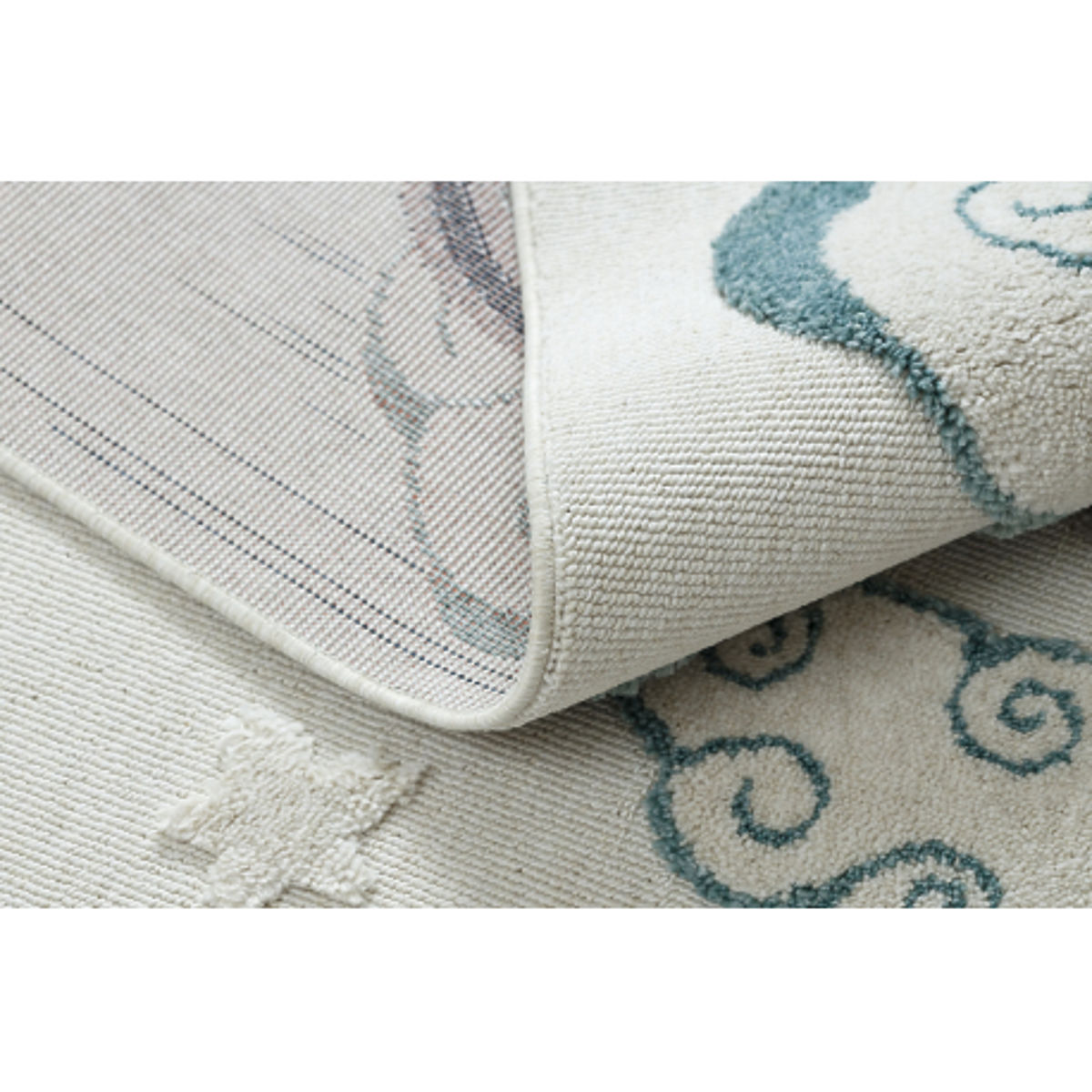 Koberec má strukturální povrch s třásněmi, který podporuje hmatový a vizuální zážitek a stimuluje dětskou kreativitu a zvídavost. Díky kvalitní polyesterové přízi je koberec měkký, lehký a snadno udržovatelný. Tloušťka koberce se pohybuje mezi 8 mm a 16 mm, což poskytuje pohodlí při hraní i odpočinku. Hmotnost závisí na vzoru a pohybuje se mezi 2,0–2,50 kg/m².