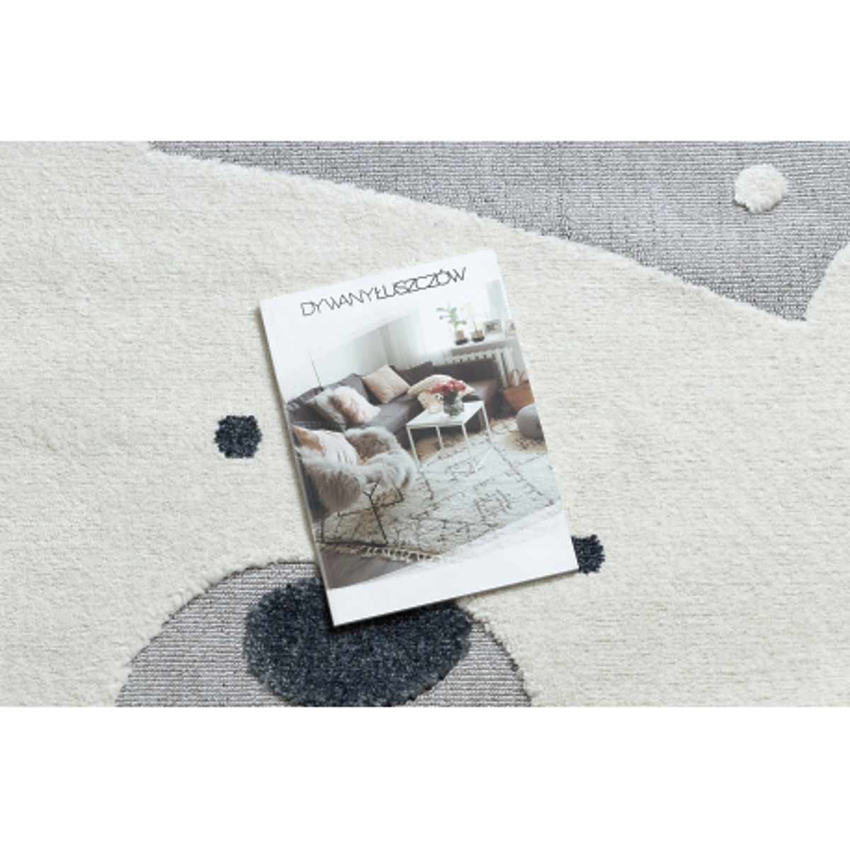 Kulatý koberec YOYO EY81 Medvěd a hory je ideální volbou pro dětské pokoje, kde se klade důraz na hravost a senzorické vnímání. Kombinace šedé a bílé barvy vytváří moderní, jemný a přívětivý vzhled, který se hodí do různých interiérů.