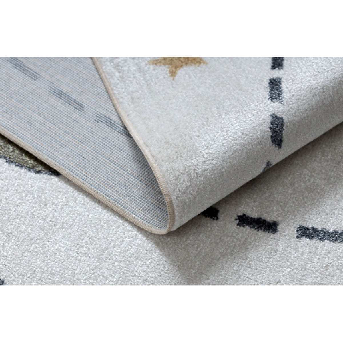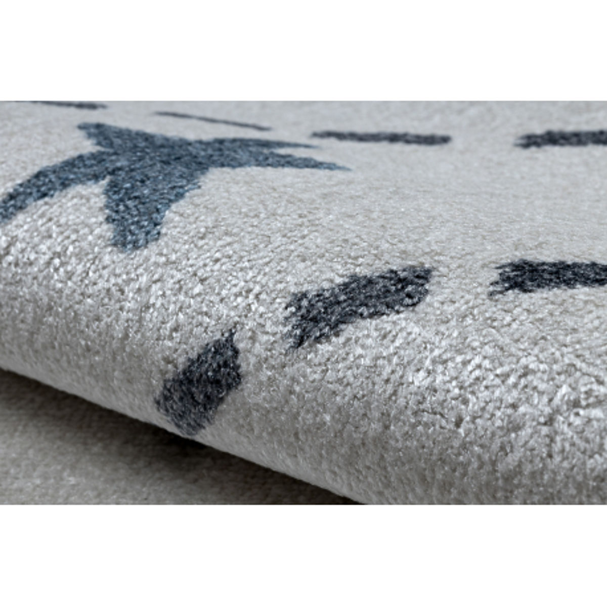 Obdélníkový koberec BONO 8288 Prostor a planety vnese do dětského pokoje vesmírnou atmosféru plnou fantazie a objevování. Krémový podklad v kombinaci s antracitovými detaily vytváří moderní a vizuálně atraktivní vzhled, který snadno zapadne do různých interiérů.