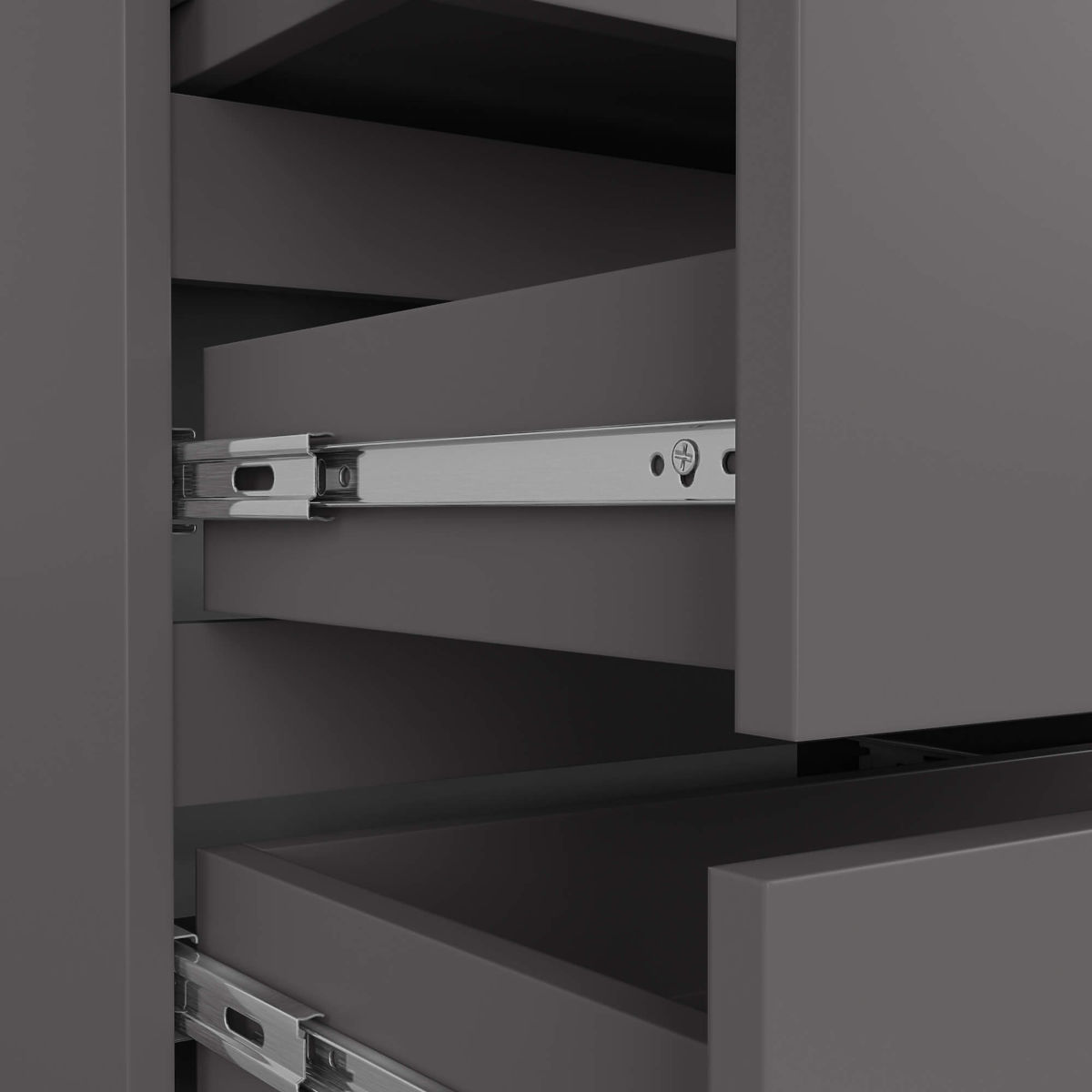 - Zásuvky se pohybují na kovových kuličkových pojezdech