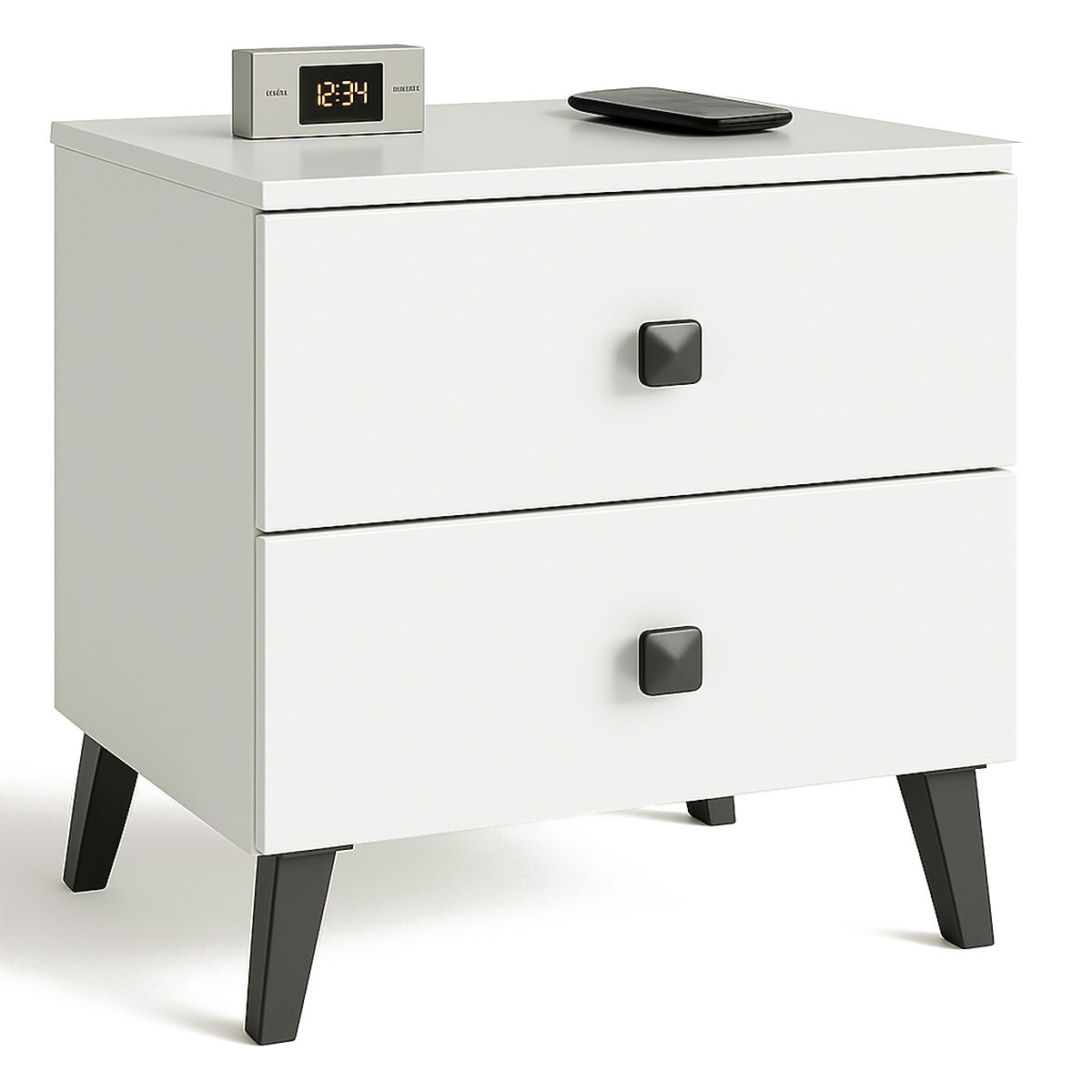 NOČNÍ STOLEK MOBI 2 ZÁSUVKY BÍLÝ ČERNÝ
