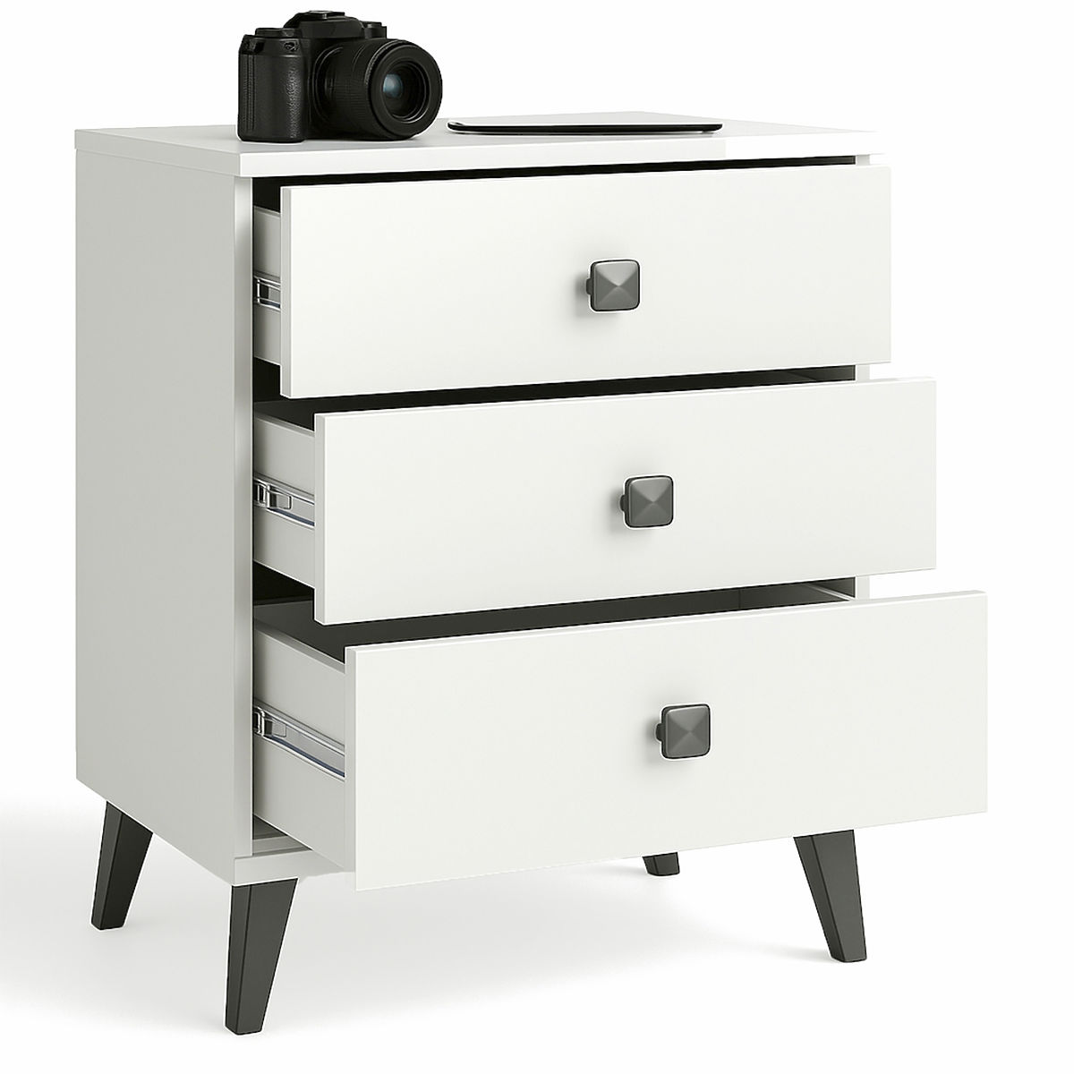NOČNÍ STOLEK MOBI 3 ZÁSUVKY BÍLÝ ČERNÝ