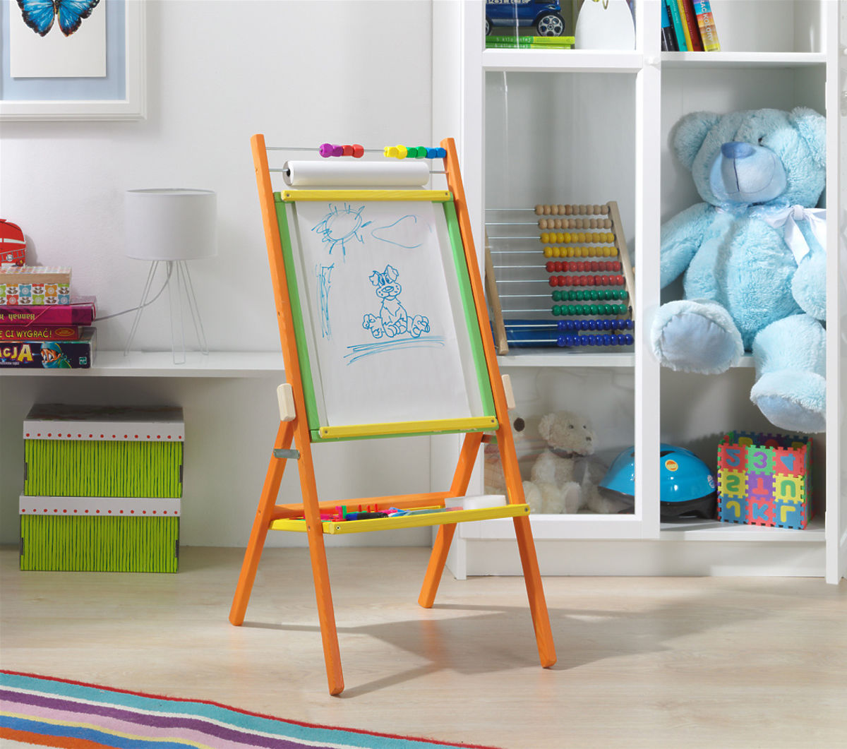 Upozornění: Magnetky na tabuli ani hadřík pro mazání fixu nejsou součástí balení.