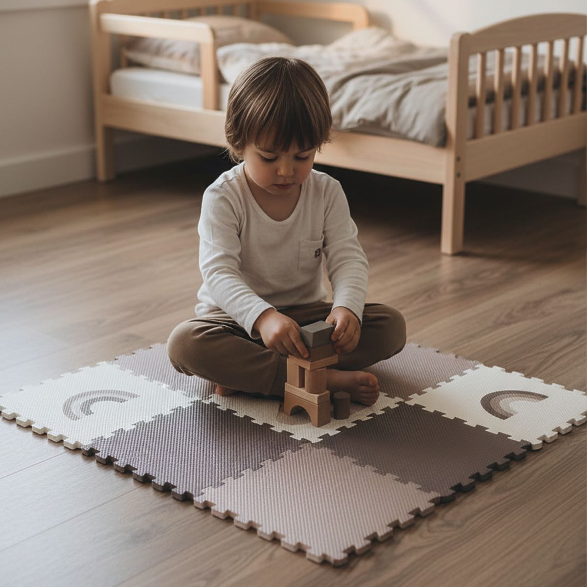 Pěnová podlaha MINIDECKFLOOR vytváří měkký, teplý a bezpečný prostor pro hraní i odpočinek. Díly jednoduše složíte jako puzzle a během chvíle máte hotovo. Kombinace několika barev a motivů dodá místnosti moderní a hravý vzhled.