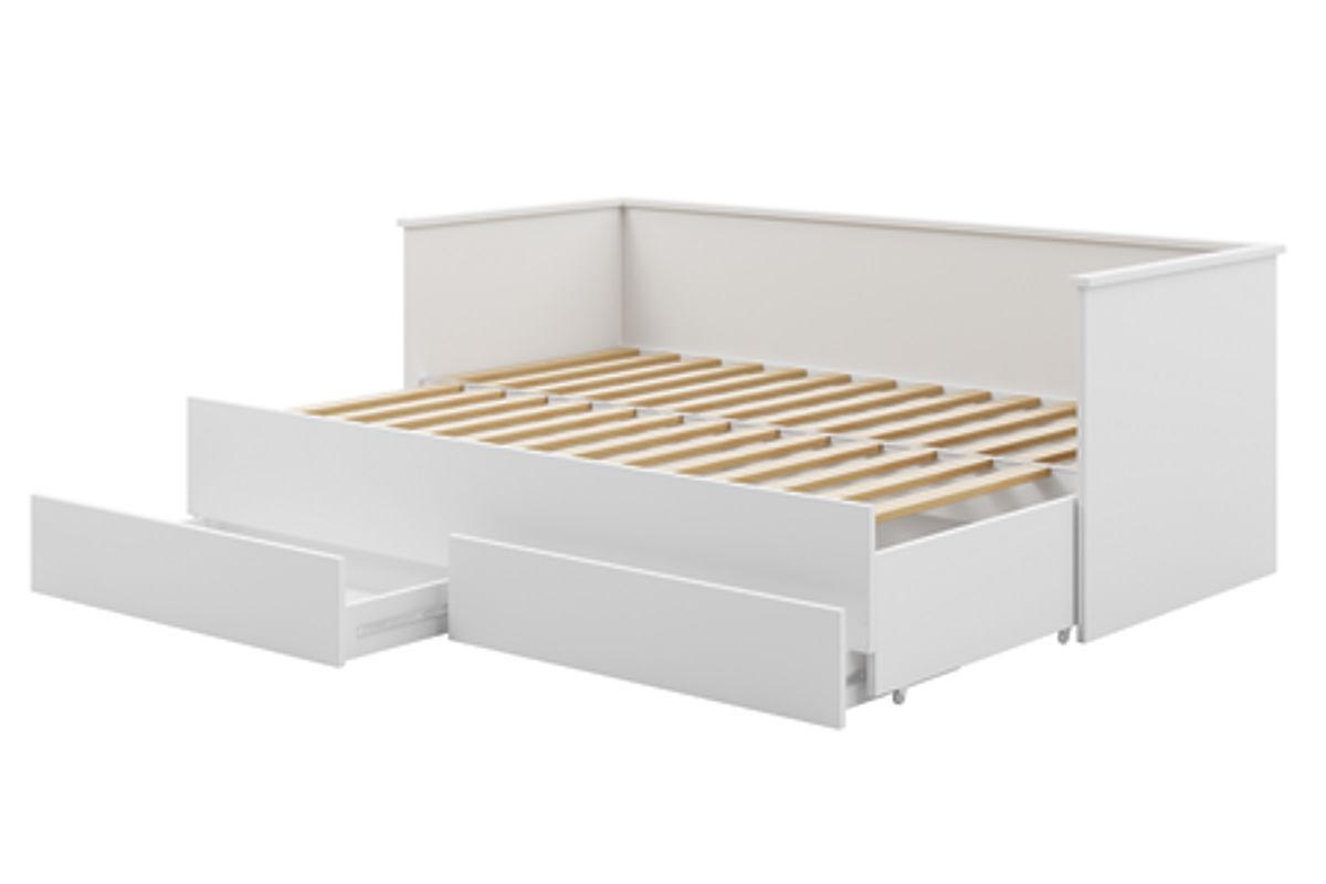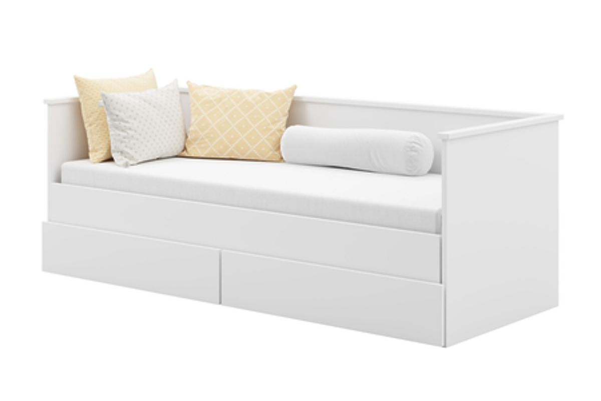 Rozkládací postel HELIOS s bílým designem a dvěma zásuvkami. .. více