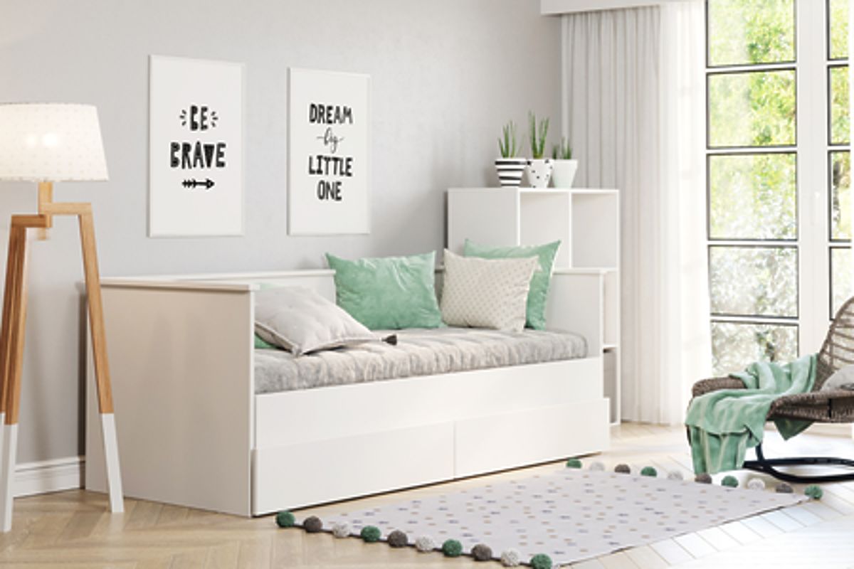 Postel HELIOS je moderní, rozkládací postel pro mládež, která kombinuje estetiku s praktickými funkcemi. Díky možnosti rychlého rozložení na dvoulůžko, vysunutím spodní základny, se tento nábytek skvěle hodí jak do malých, tak i prostorných pokojů. Jeho univerzální design v bílé barvě se přizpůsobí každému stylu interiéru, dodávajíc mu svěžest a eleganci.