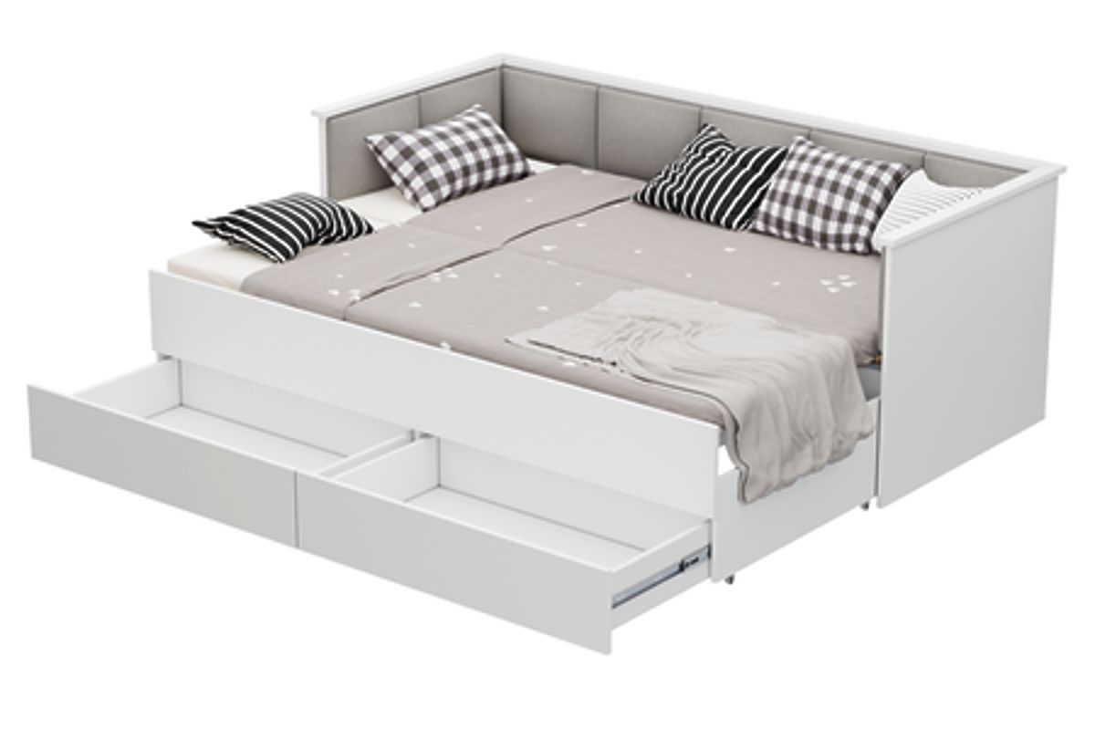 Rozkládací postel HELIOS s čalouněnými panely a úložnými zásuvkami. .. více