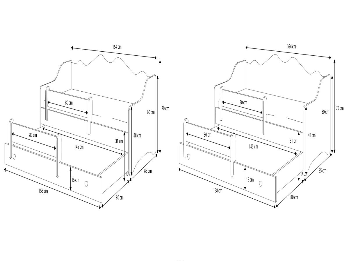 Dětská postel Kobi Emma je ideálním řešením pro rodiče, kteří hledají praktický a estetický nábytek do dětského pokoje. Tento model má dvě spací plochy – horní o rozměrech 160x80 cm a dolní 145x80 cm – což z něj činí skvělou volbu jak pro sourozence, tak pro děti, které rády zvou přátele na přespání. Jemné detaily a promyšlený design zajišťují, že postel harmonicky zapadá do každého interiéru a stává se jeho ozdobou.