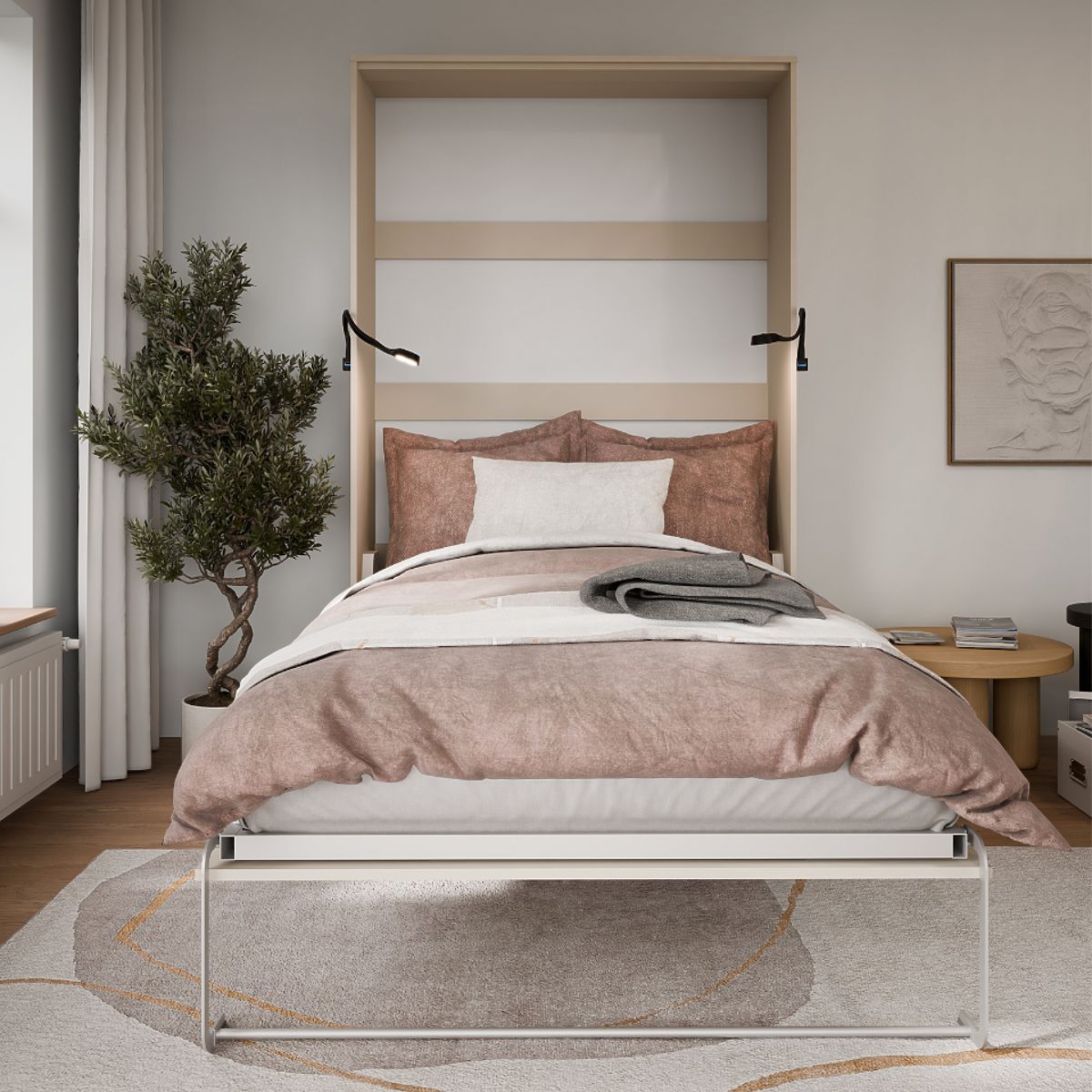 Model VERTO dokonale nahrazuje tradiční postel, nabízí komfort a dodatečný prostor během dne. Po zavření se stává minimalistickou nástěnnou konstrukcí a jeho lehký a bezpečný mechanismus usnadňuje každodenní používání. Skvěle se hodí do garsonky, studentského pokoje, kanceláře, ložnice nebo obývacího pokoje. Vyrobeno z odolné nábytkové desky a dostupné v mnoha velikostech a barvách, umožňuje přizpůsobení různým aranžmá. Promyšlené detaily a pevná konstrukce zajišťují, že nábytek obstojí při každodenním intenzivním používání. Barvy produktu se mohou mírně lišit v závislosti na nastavení obrazovky.