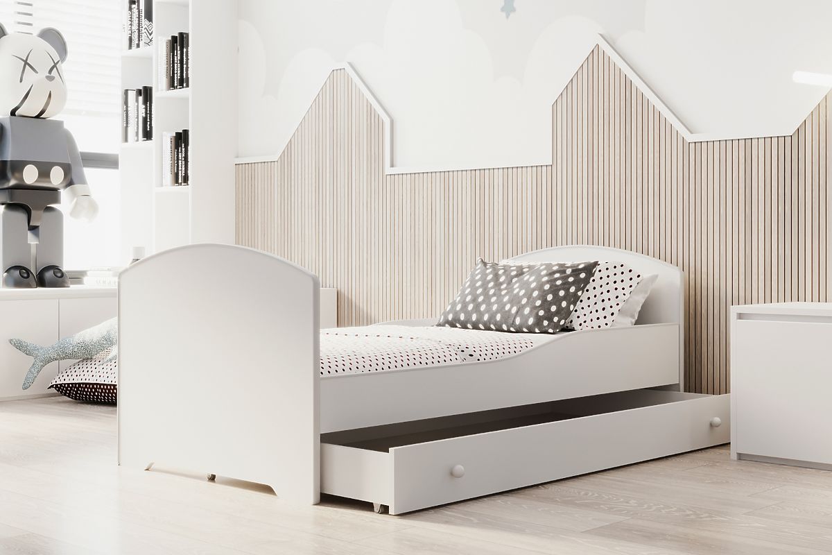 Dětská postel LUK je dokonalou kombinací komfortu, moderního designu a funkčnosti, vytvořená s ohledem na nejmenší. Její univerzální vzhled zajišťuje, že se hodí do různých interiérových aranžmá, poskytuje pohodlí a bezpečnost při používání.