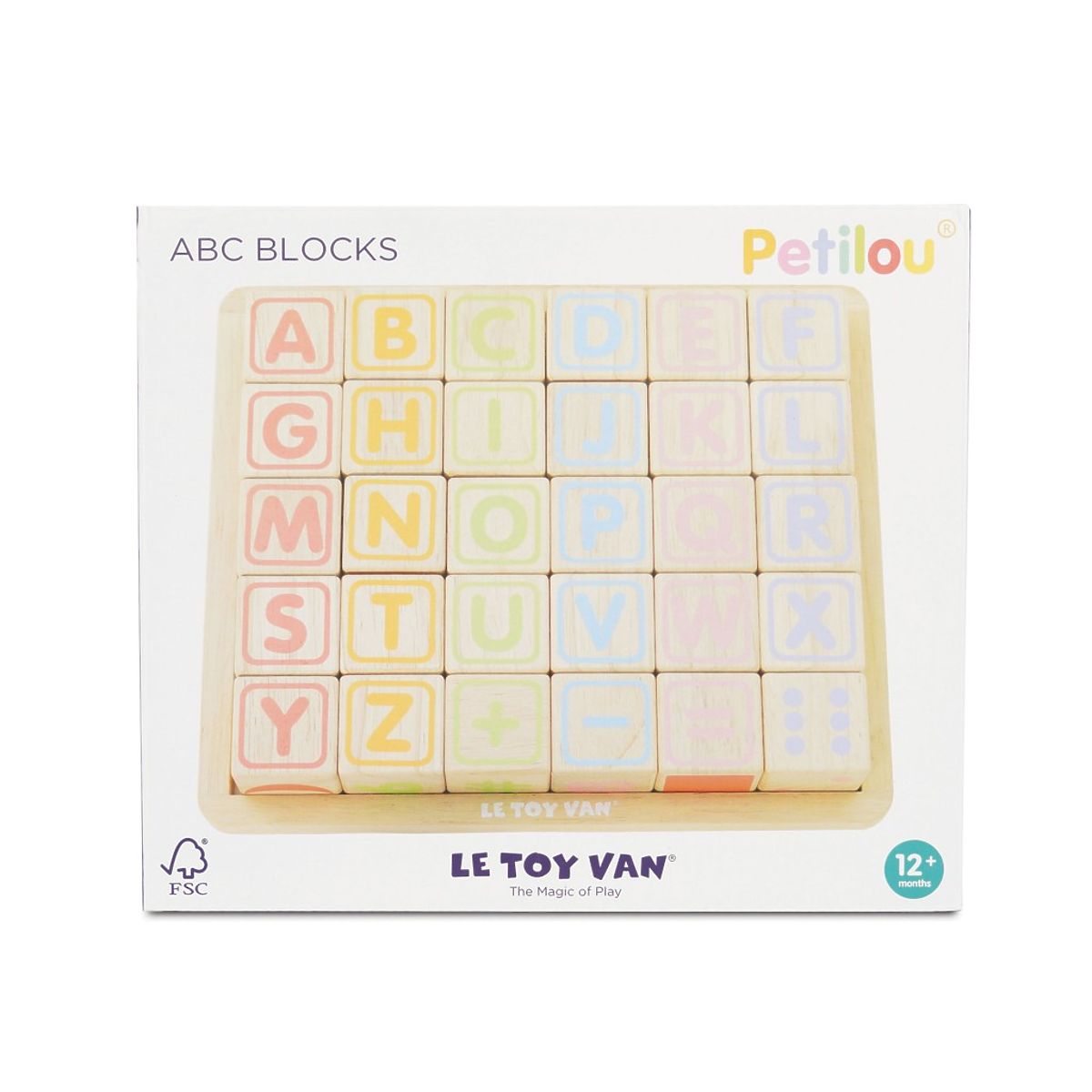 Naučte nejmenší děti abecedu zábavnou formou! Kostky jsou tradiční hmatovou hračkou, která rozvíjí zručnost, koordinaci ruka-oko, motoriku a prostorovou představivost. Každá z 30 kostek je ručně natištěna sítotiskem, každá je jedinečná. Kostky mají na každé ze stran jiný design – číslice, písmena, obrazce, zvířátka… Hračka je vyrobena z odolného kaučukového dřeva a malována barvami na bázi vody, které se neodlupují. Kostky i úložná deska mají zaoblené hrany, tato hračka bez obsahu plastu je tak bezpečná pro děti. Hračky s účelemVšechny hračky firmy Le Toy Van jsou vyrobeny s cílem – aby dlouho vydržely. Designovány s láskou zkušenými řemeslníky za použití etických praktik a udržitelných materiálů, které jsou laskavější k naší planetě. Hlavní vlastnosti: vyrobeno eticky z udržitelného dřevatestováno dle nejpřísnějších standardůmalováno netoxickými barvami na bázi vodyinspiruje k představivé hřerozvíjí kognitivní dovednostihračka bez obsahu plastu Ocenění hračky:Loved By Parents Best Buy Platinum Award 2018Early Years Five Star Excelence 2018Good Toy Guide Recommended Petilou kolekce: Kolekce pro nemluvňata a batolata od Le Toy Van obsahuje hlavně hmatové hračky, které mají nejmenším posloužit také jako učební prostředky. Kolekce je inspirována přírodou kolem nás a je navržena tak, aby rozvíjela smysly dětí pomocí rozdílných zvuků, textur, tvarů a hmotností. Děti tak od malička zapojí všechny své smysly. V kolekci najdete například skládačky, vkládačky, chodítka, … Značka a certifikát FSC® (Forest Stewardship Council) zaručuje, že dřevo, ze kterého byl produkt vyroben, nebylo vytěženo nelegálně a pochází z lesů obhospodařovaných šetrným či přírodě blízkým způsobem, ve kterém jsou dodržovány přísné environmentální a sociální požadavky. Značka FSC® na výrobku znamená, že svým nákupem pomáháte chránit lesy a podporujete šetrné, odpovědné či přírodě blízké hospodaření, díky kterému jsou naše lesy stabilnější, zdravější, mají přirozenou druhovou skladbu a lépe odolávají negativním následkům klimatických změn.