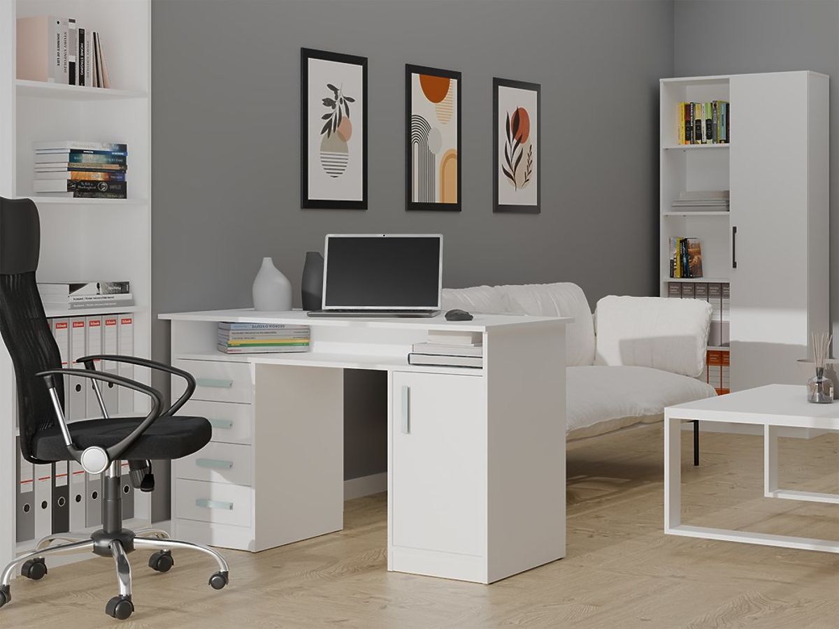 BIURKO ADA BIAŁE 125 Cm 4 Szuflady Szafka Półki Do Biura Pokoju Na Laptop